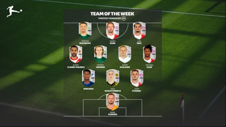 前锋:路易斯·迪亚斯(拜仁)、凯恩(拜仁)、佩伊契诺维奇(沃尔夫斯堡)