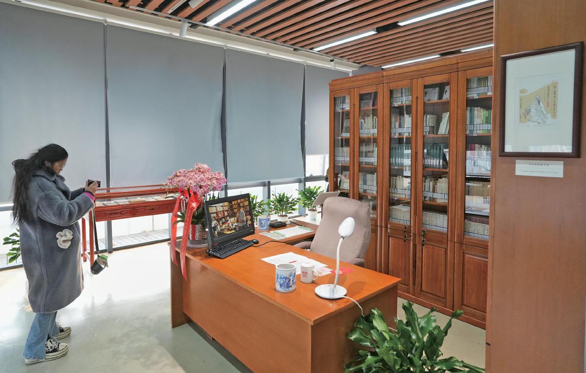 12月22日,首都图书馆,“陈夏书房”中复刻了一处家中原貌,原样保留陈平原、夏晓虹两位教授的工作场景。本版摄影/新京报记者浦峰