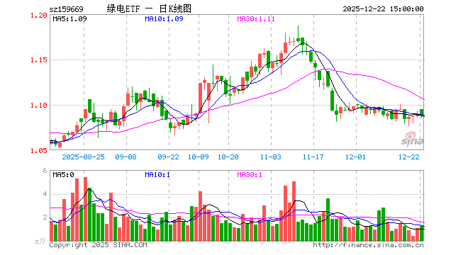 12月22日,绿电ETF(159669)跌0.18%,成交额138.56万元。当日份额减少50.00万份,最新份额为9025.48万份,近20个交易日份额减少150.00万份。最新资产净值计算值为9814.30万元。