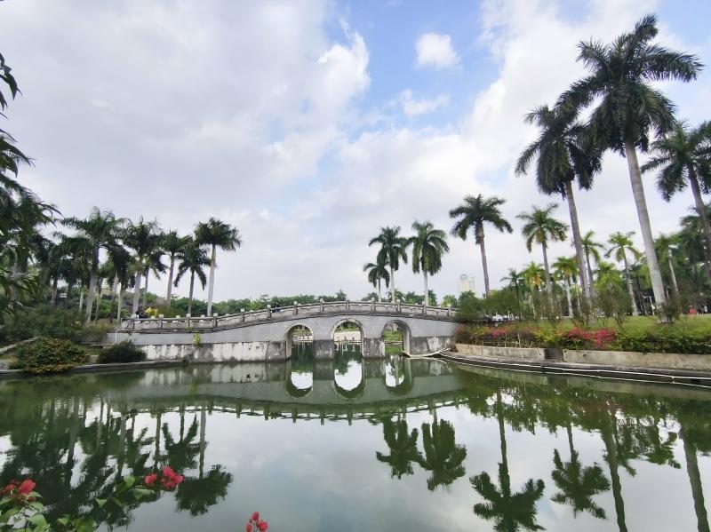 南宁阴转多云、微有凉意,南湖公园依然水碧花红、草木青翠。记者宋延康摄