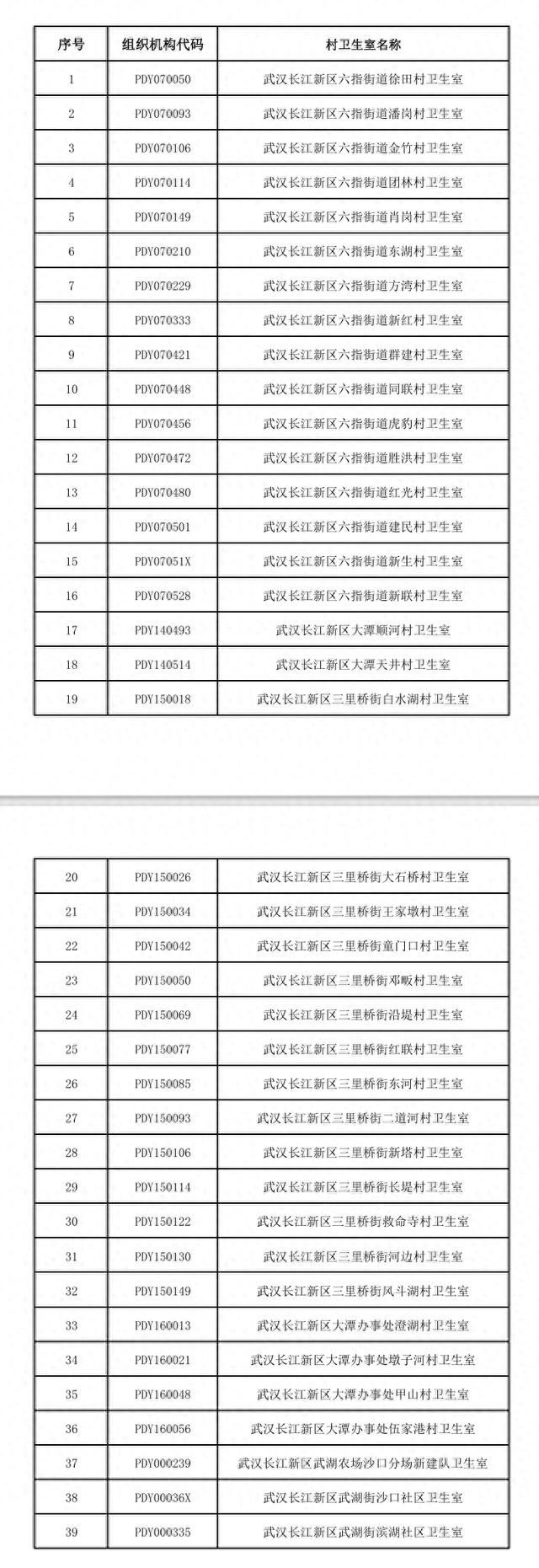12月22日,武汉长江新区党政办、江夏区医疗保障局发布各区拟纳入定点村卫生室公示名单,长江新区68家、江夏区7家村卫生室拟纳入医保定点管理。