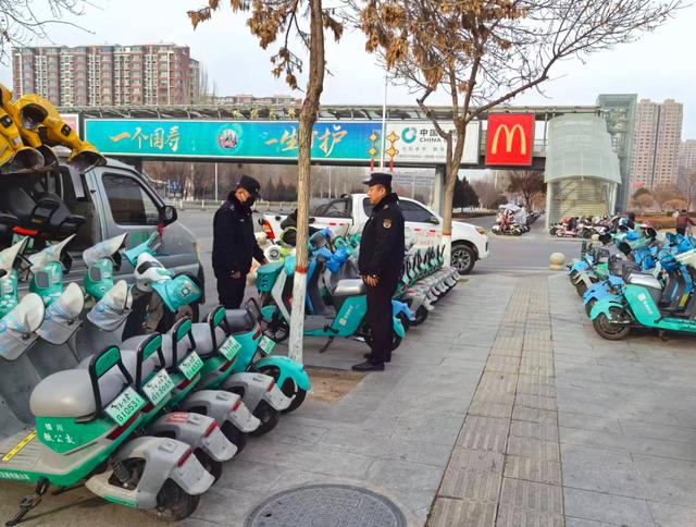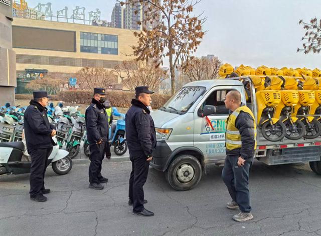 入冬后气温持续走低,骑行需求大幅减少,部分主干道及商业区周边出现车辆淤积、无序停放现象,挤占公共空间、影响交通安全。金凤区综合执法局聚焦问题突出区域,组织执法人员对万达广场、阅彩城、文化城周边及火车站等重点地段进行集中治理。行动中,执法队伍现场约谈共享单车运营企业负责人,要求其切实履行主体责任,加强运维力量,落实精细化管理。