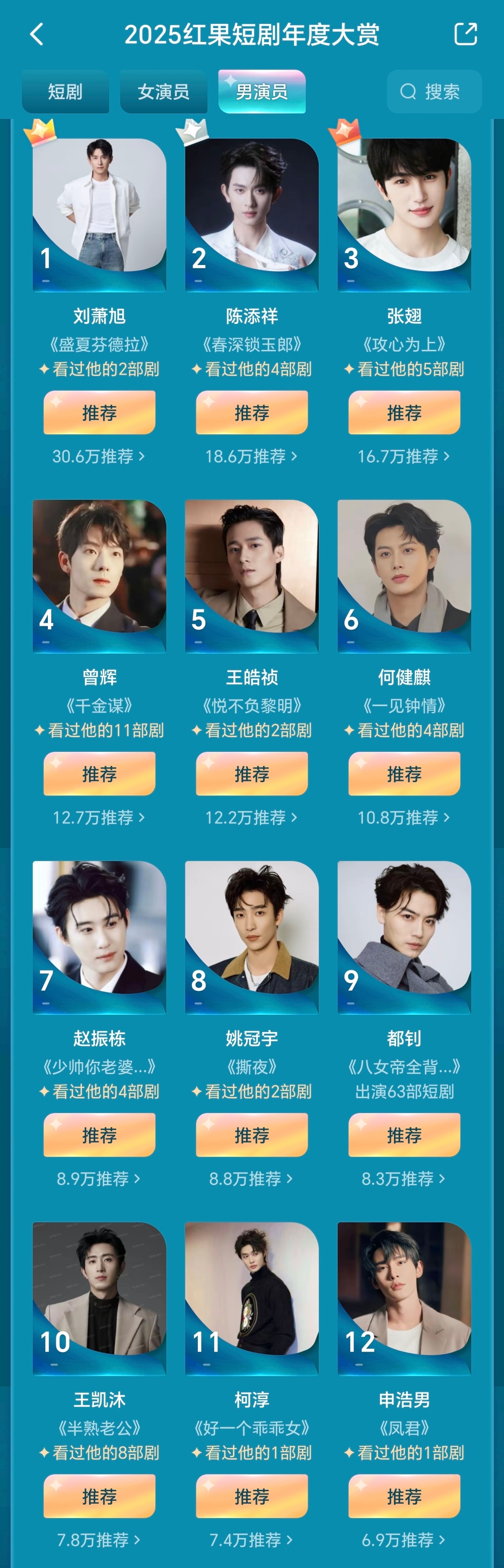 红果年度大赏投票前十应该不会有大变化了盛夏芬德拉all in,郭宇欣>剧>刘萧旭郭宇欣全类别票数最多,优势还越来越大岳雨婷上升到第三,张翅也升到第三,两家一起投攻心为上投到第二