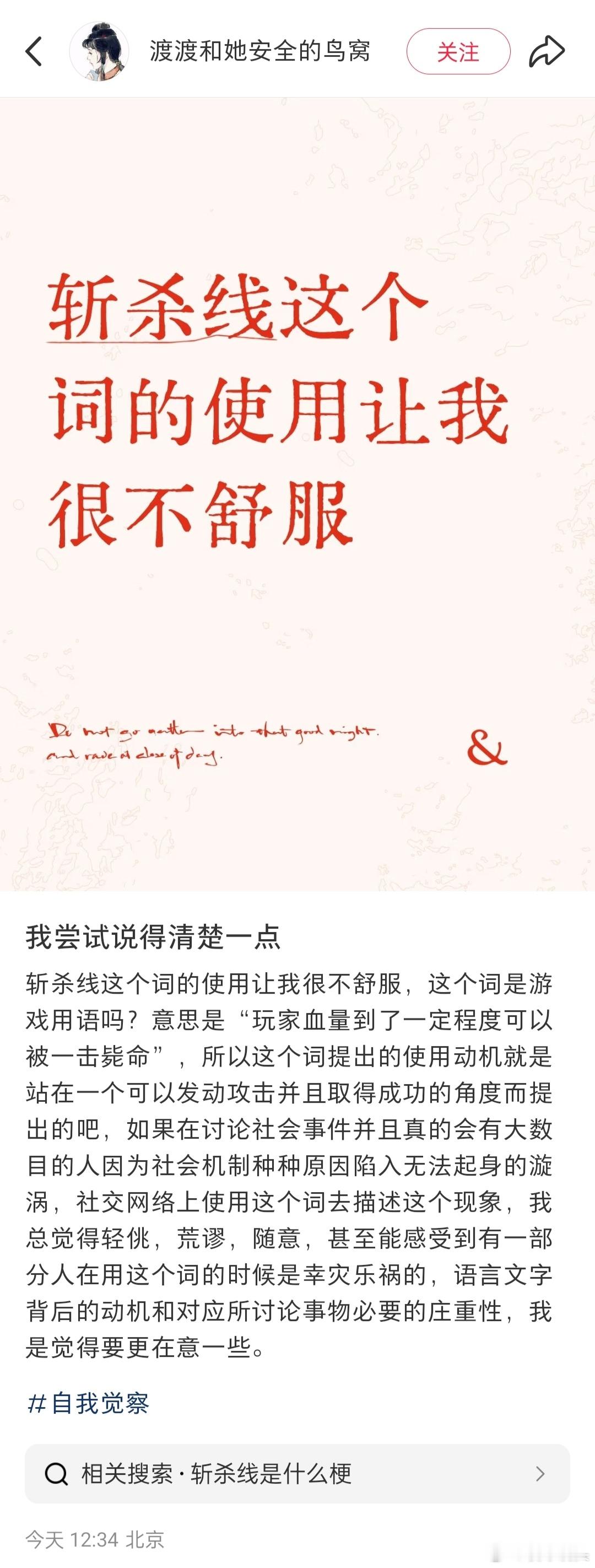 牢A发明斩杀线的真的是一个天才,这个词一针见血地描述了美国的一个荒谬的社会现象。荒谬的不是这个词,而是社会现象。没想到有人会专门发一个帖子,说斩杀线这个词让人不舒服。这难道不是理所当然的吗?斩杀线这个词是能让人舒服的词吗?这本身就是一个彻彻底底的贬义词。提出这个质疑的人该不会认为社会完全光明,世界一片美好吧!让你不舒服就对了,这个世界本来就是美丽又丑陋的。不要在温室里面呆久了,就觉得世界没有风雨。人要对社会有一个最基本的认知,不要自欺欺人。
