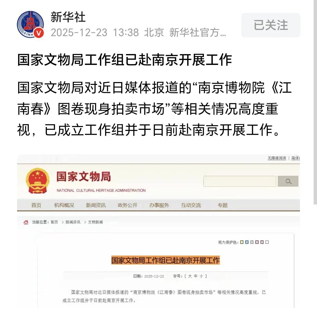 南京博物院事件,国家政府终于有大动作了。 “江苏省委、省政府决定,在前期初步核查基础上,成立由纪委监委、宣传、政法、 公安、文旅、文物等部门组成的调查组”开展深入调查,并且表态“绝不姑息”。 国家文物局也派了工作组到南京开展调查。 这次的事情,如果不能给大众一个满意的交代,那恶劣的社会影响会持续至少十年以上。 该抓的抓,该判的判,该追责的要追责,该归还的要归还,不因为历史年代问题而回避不解决。如此才能让老百姓信服。 红十字会的郭美美,江西的鼠头鸭脖,少林寺的释永信,协和医院的董小姐……最近这些年类似的社会事件一直在透支着公信力,一旦社会信用崩坏了、修复起来的代价是极其高昂的。 南京博物院