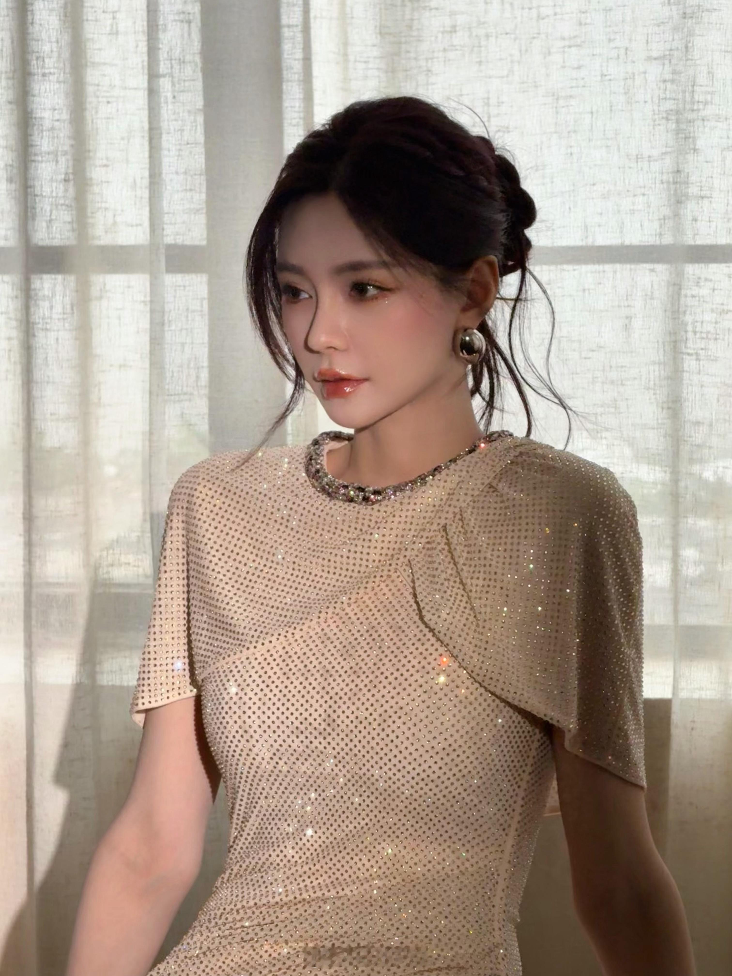 棕色旗袍,中年美女千娇百媚,仪态万方绰约多姿,国色天香花容月貌,秀外慧中