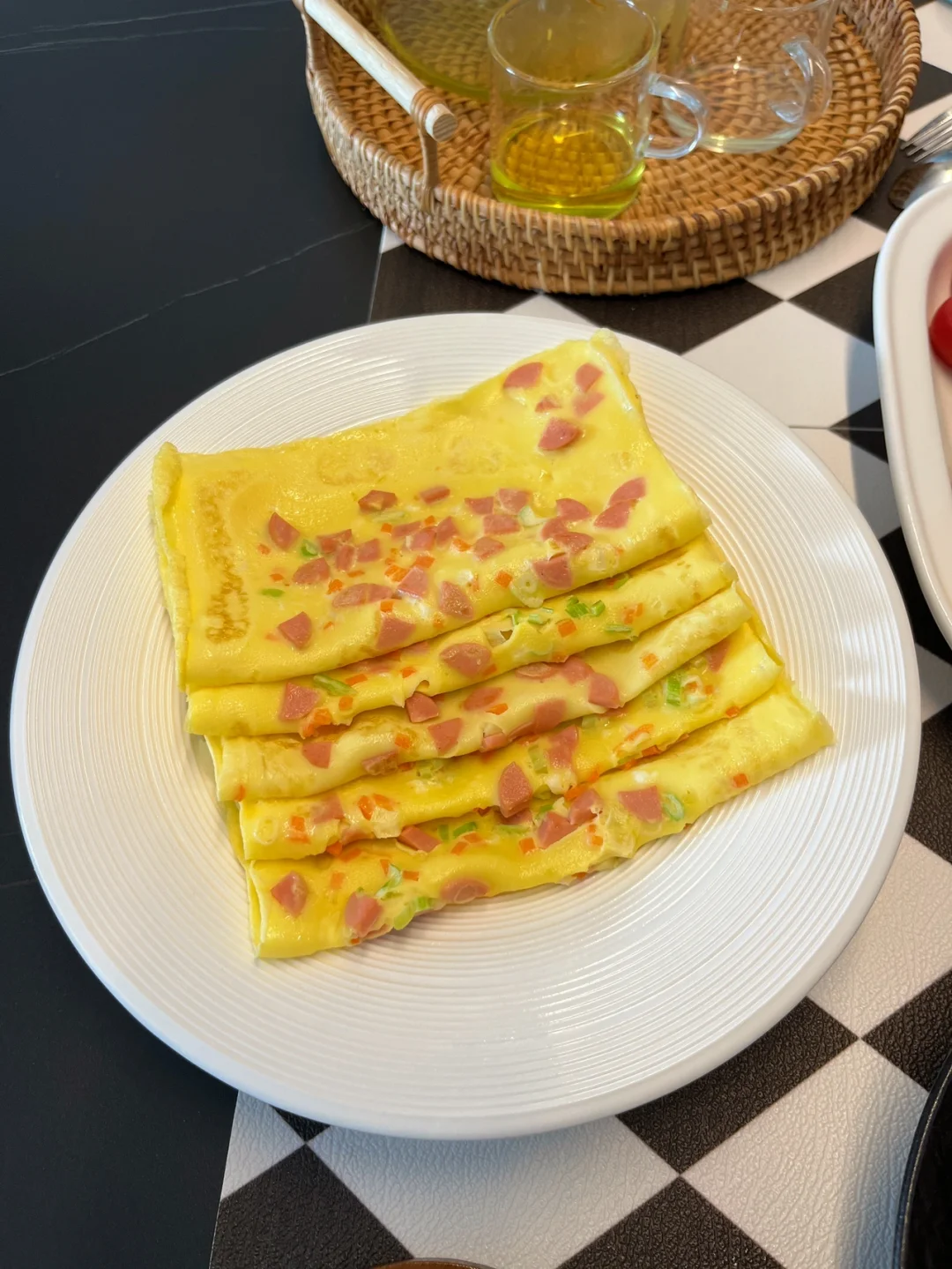 今天做了鸡蛋饼,简单营养又好吃,切记做的时 候要小小火!