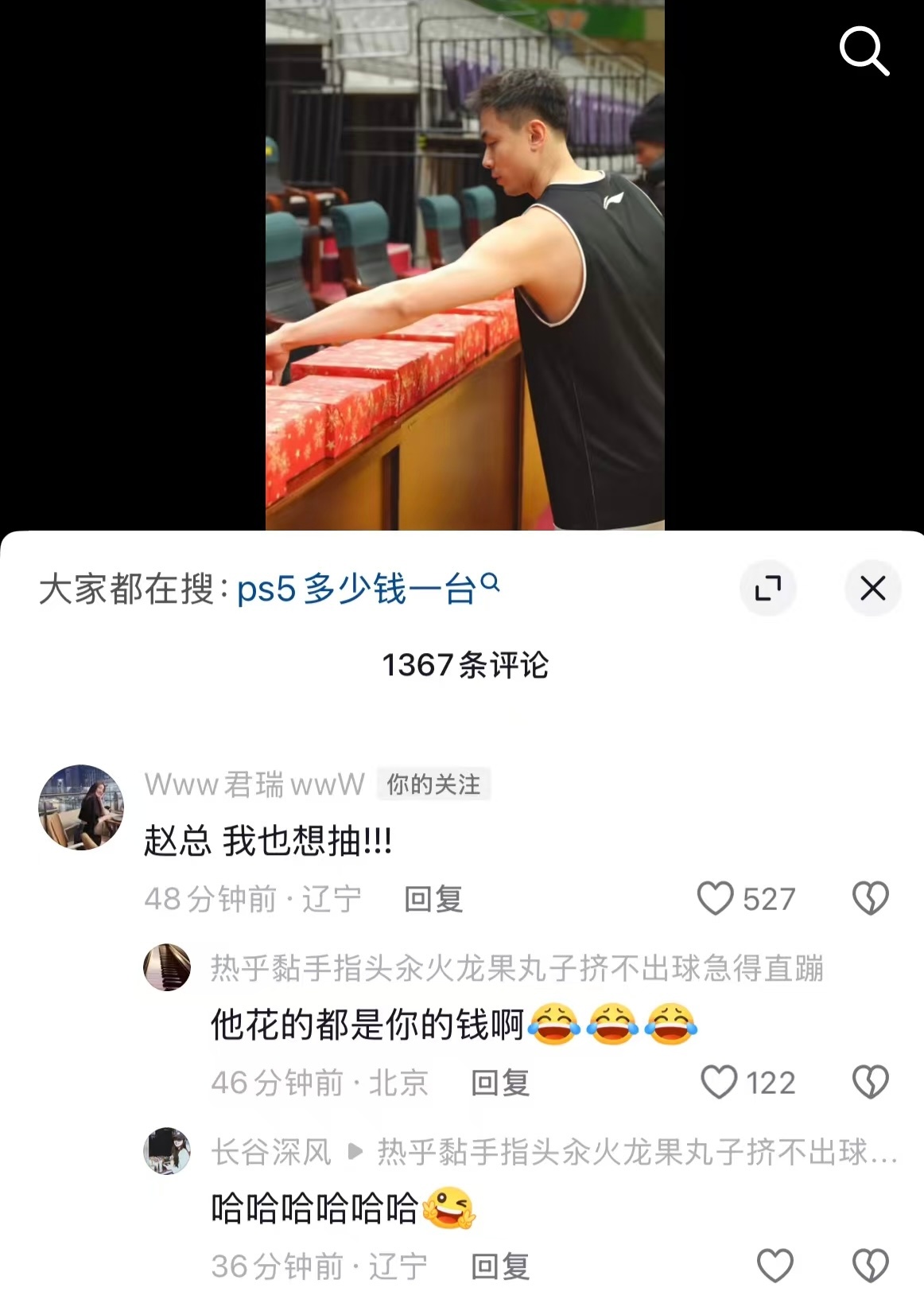 赵总,我也想抽!他花的都是你钱哈哈哈哈哈哈哈哈哈哈哈哈。赵继伟辽宁男篮 赵继伟为全队准备新年礼物