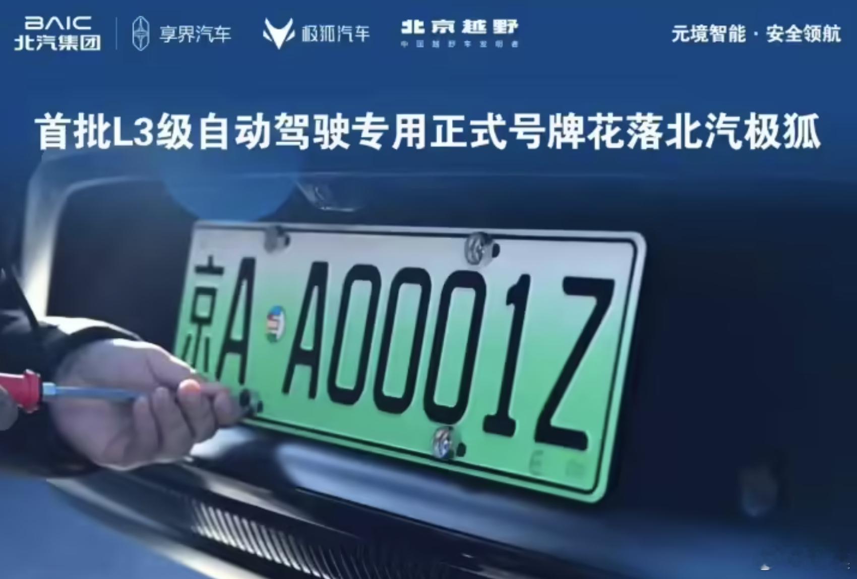 北京首批L3级高速自动驾驶车辆上牌首批上牌的三辆车号牌分别为:京AA0001Z、