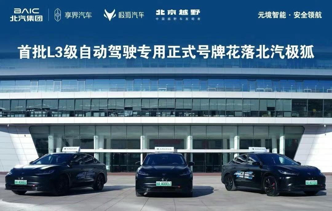 首批L3高速专用号牌什么样北京市首批 L3 级高速公路自动驾驶车辆专用号牌于今日由北京市公安局交通管理局正式发放给三辆智能网联汽车,这也是国内首批发放的 L3 级高速公路自动驾驶车辆专用号牌,3 张号牌分别为:京 AA0001Z、京 AA0733Z、京 AA0880Z~