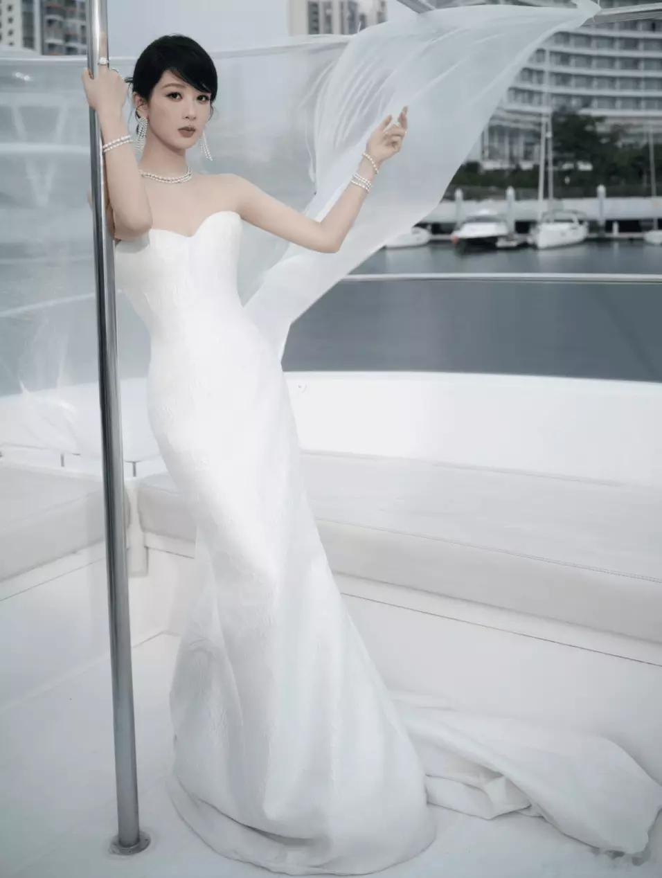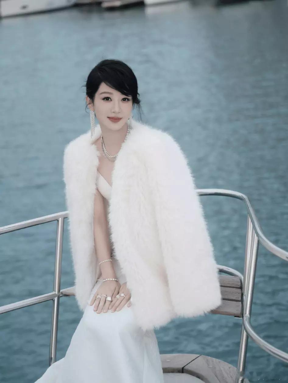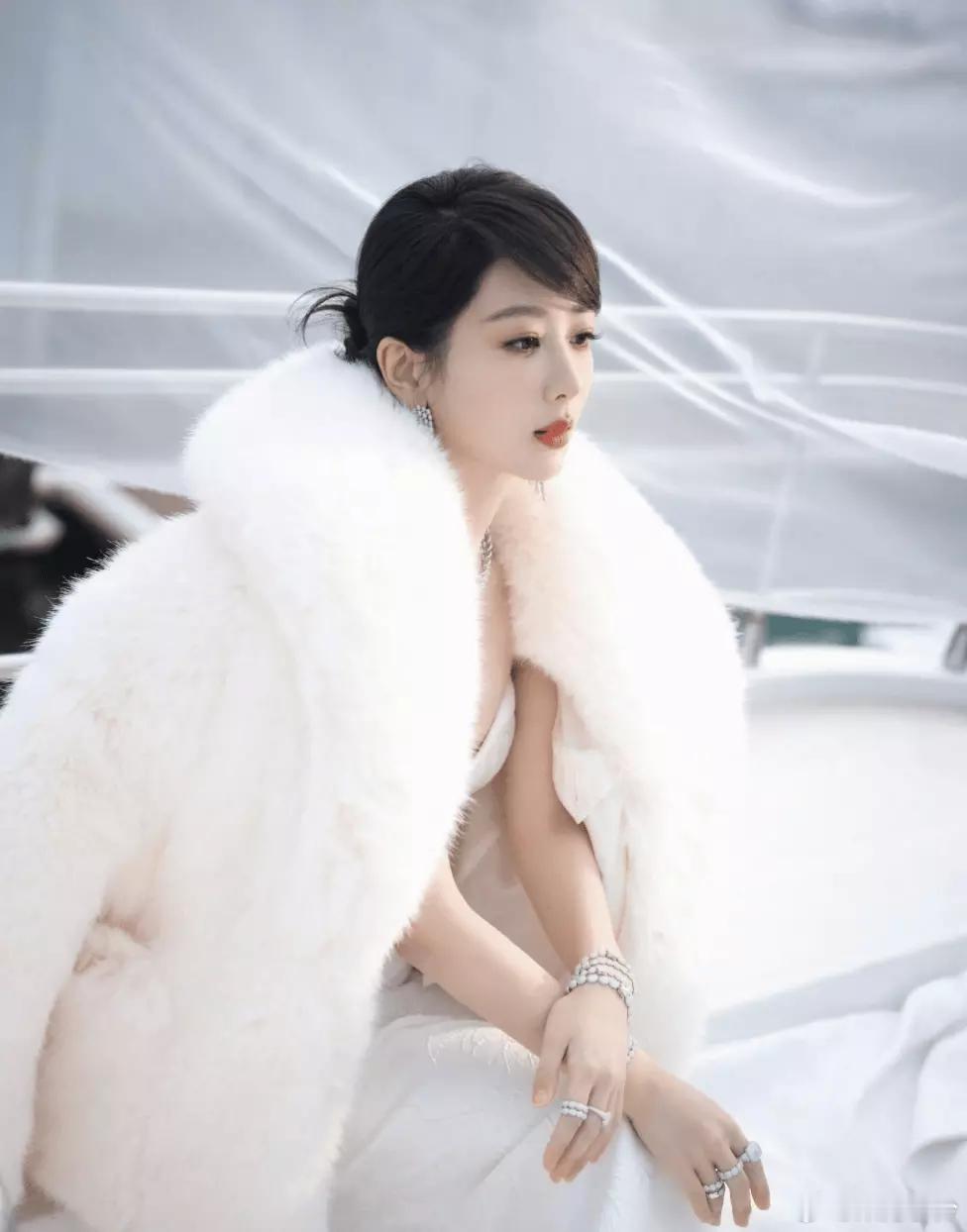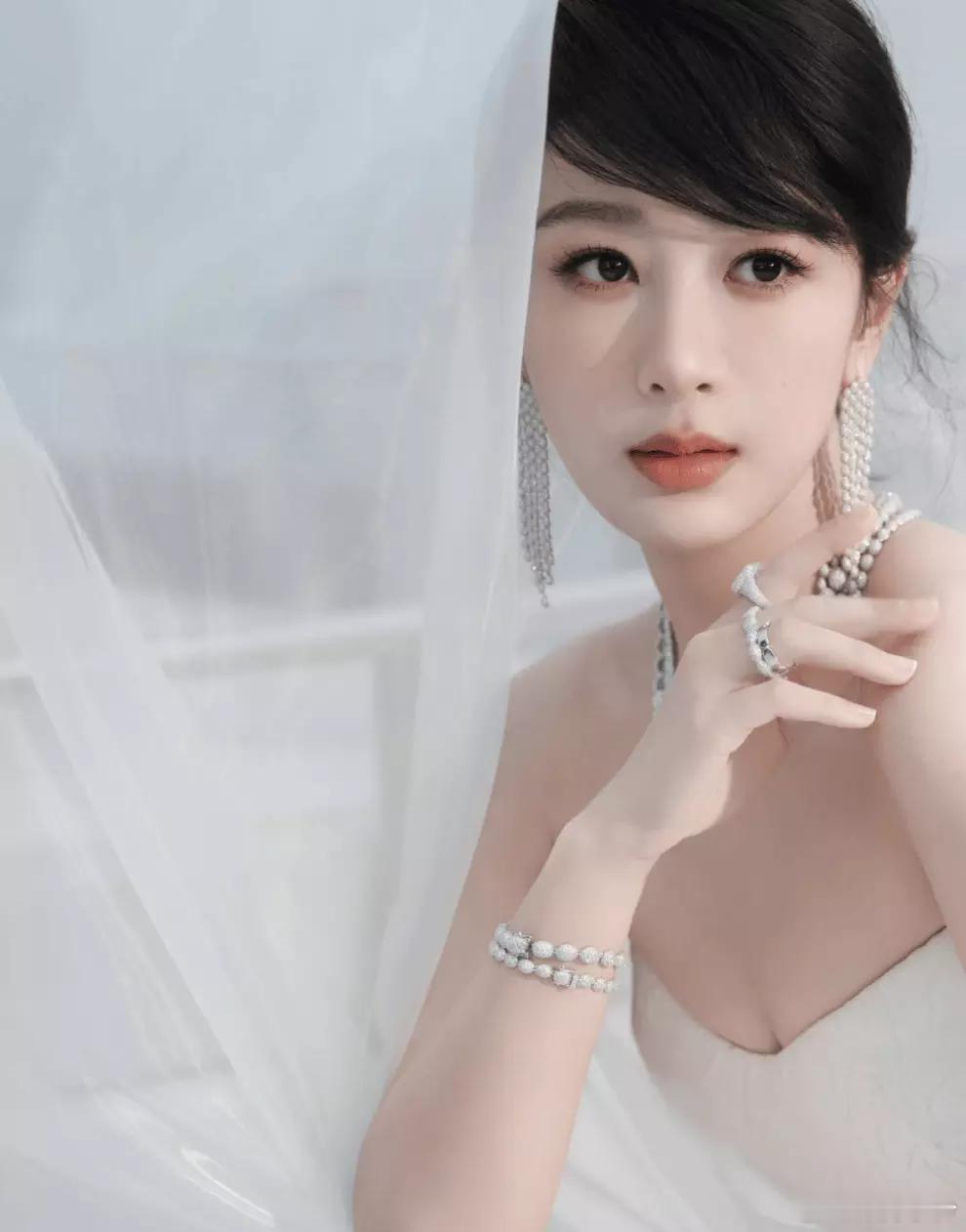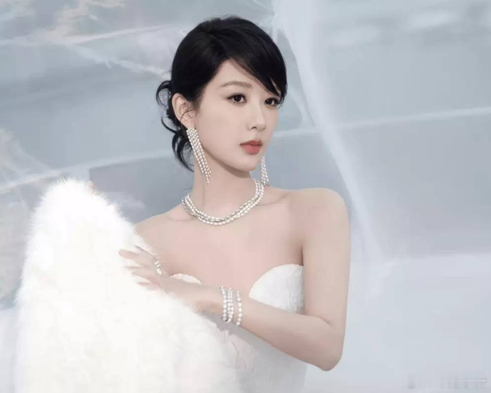 分享娱乐杨紫斜刘海白裙造型贵气优雅 珍珠点缀化身冰雪女 王