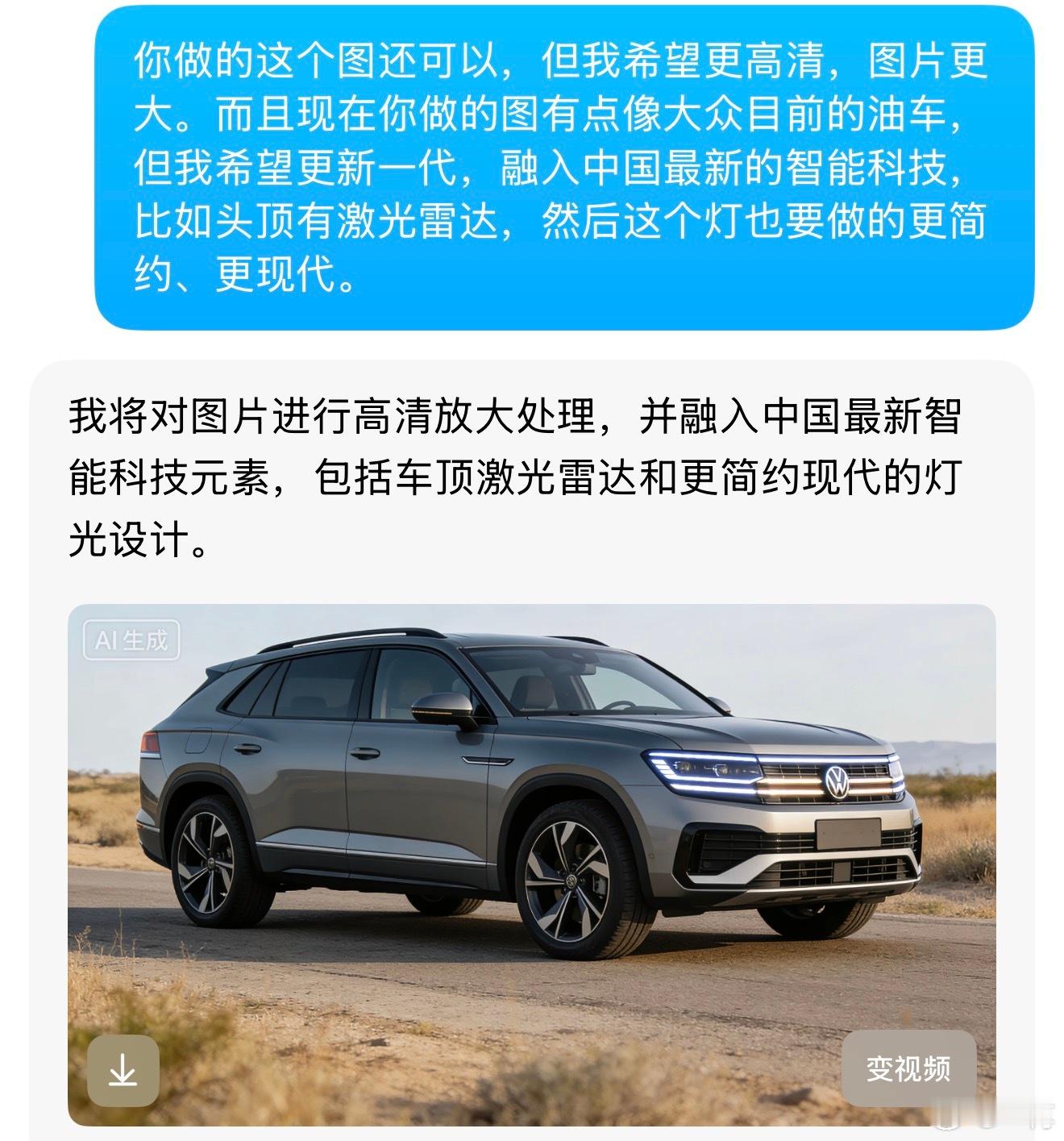试图让AI描述昨天我看到的“大众9系”,一再提示,给了它三次活命的机会,但还是失败了。AI还是太执迷于人类已知的信息,暂时没什么想象力。这些图片里充满了过去的大众途昂、路虎、特斯拉、谷歌Waymo式的激光雷达的影子。真车比这些AI虚拟图要好很多!但AI也很伟大,毕竟像这样的图,你给我一天也画不出来。大众id.era9系满级旗舰来了上汽大众 杭州