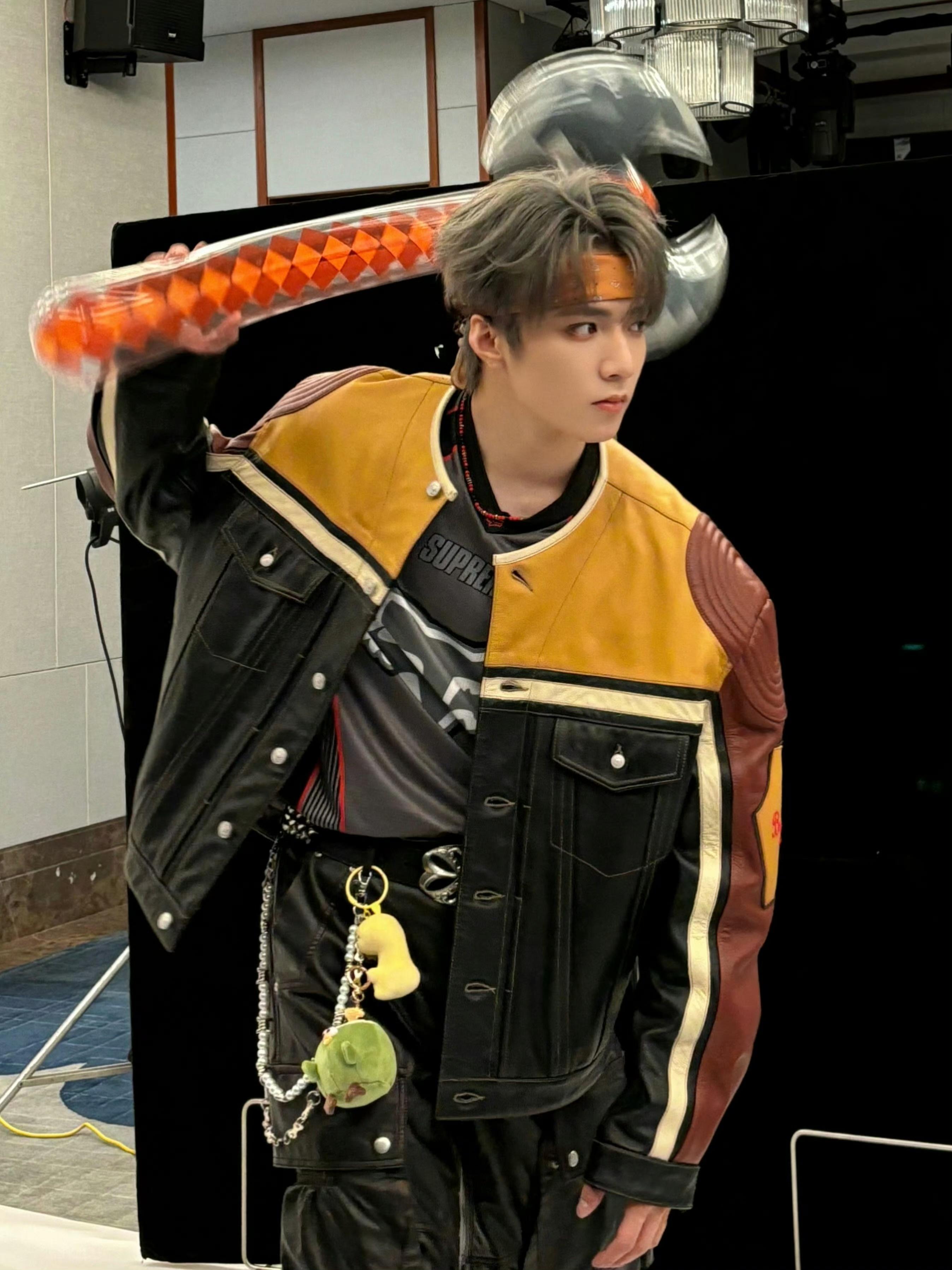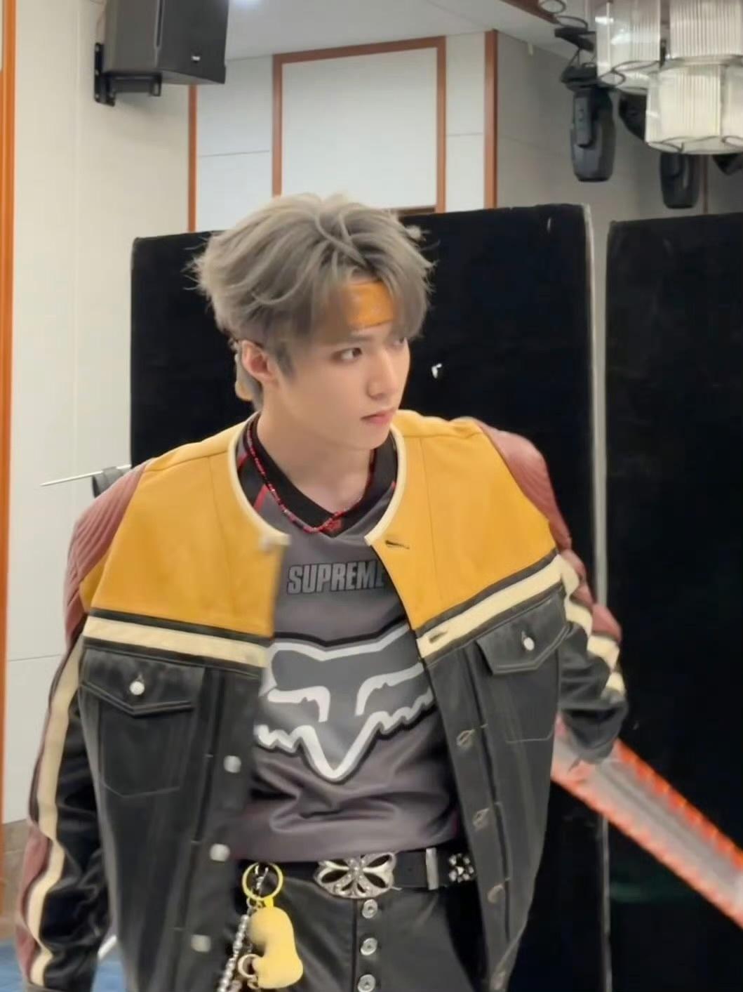 刘耀文闪烁live照 分享live图灰发配撞色夹克又酷又飒,举着道具的样子直接帅出新高度!俺们耀文随便一摆就这么有范儿