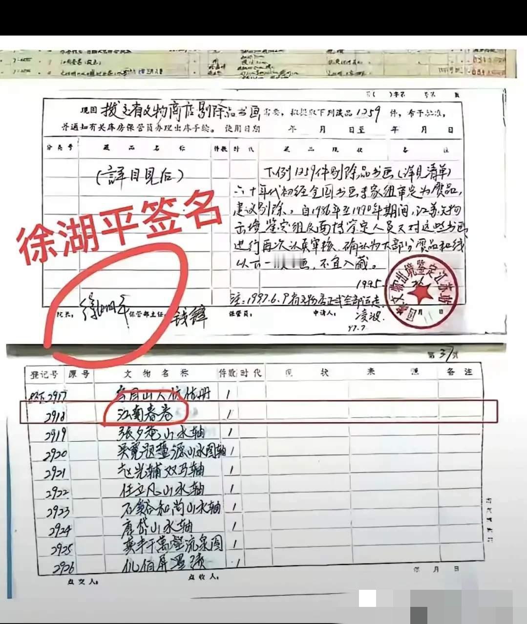 这幅仇英的《江南春》究竟是赝品吗? 当1959年,近代著名收藏家庞莱臣的孙子庞增和将祖传257幅古画捐献给南京博物院的时候,江苏省博物馆和南京博物院都曾认定这是珍贵的古画。 然而,根据徐湖平在1995年签名的一份文件显示,有1259件古画在六十年代的时候经全国书画专家组鉴定,确定为赝品,1986年到1990年间,江苏文物出境鉴定组以及南京博物院再次对这批书画进行鉴定,再次确认为赝品,其中就包括庞家捐赠的仇英的《江南春》。之后,这幅名画就从南京博物院收藏名录中踢出,并移交江苏省文物商店。 2001年,这幅画被一位顾客以6800元买走。2025年5月,该画现身北京一场拍卖预展,估价达8800万元,后在庞莱臣后人举报与国家文物部门干预下撤拍, 如果这幅画真的是赝品,它怎么会值8800万元?再说,该画曾是庞莱臣“虚斋”旧藏,庞氏鉴藏眼光向来很严,所以,这幅画大概率是真品,这里面有猫腻。