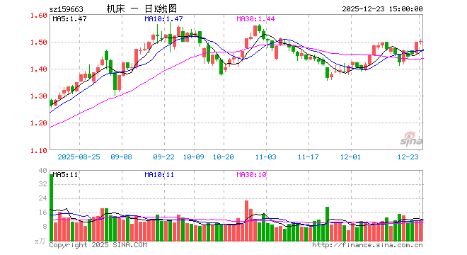 12月23日,机床ETF(159663)涨0.20%,成交额1737.46万元。当日份额减少100.00万份,最新份额为7551.76万份,近20个交易日份额减少300.00万份。最新资产净值计算值为1.13亿元。