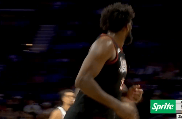 张飞绣花!恩比德底线突破反手拉杆,上半场10中7砍下19分