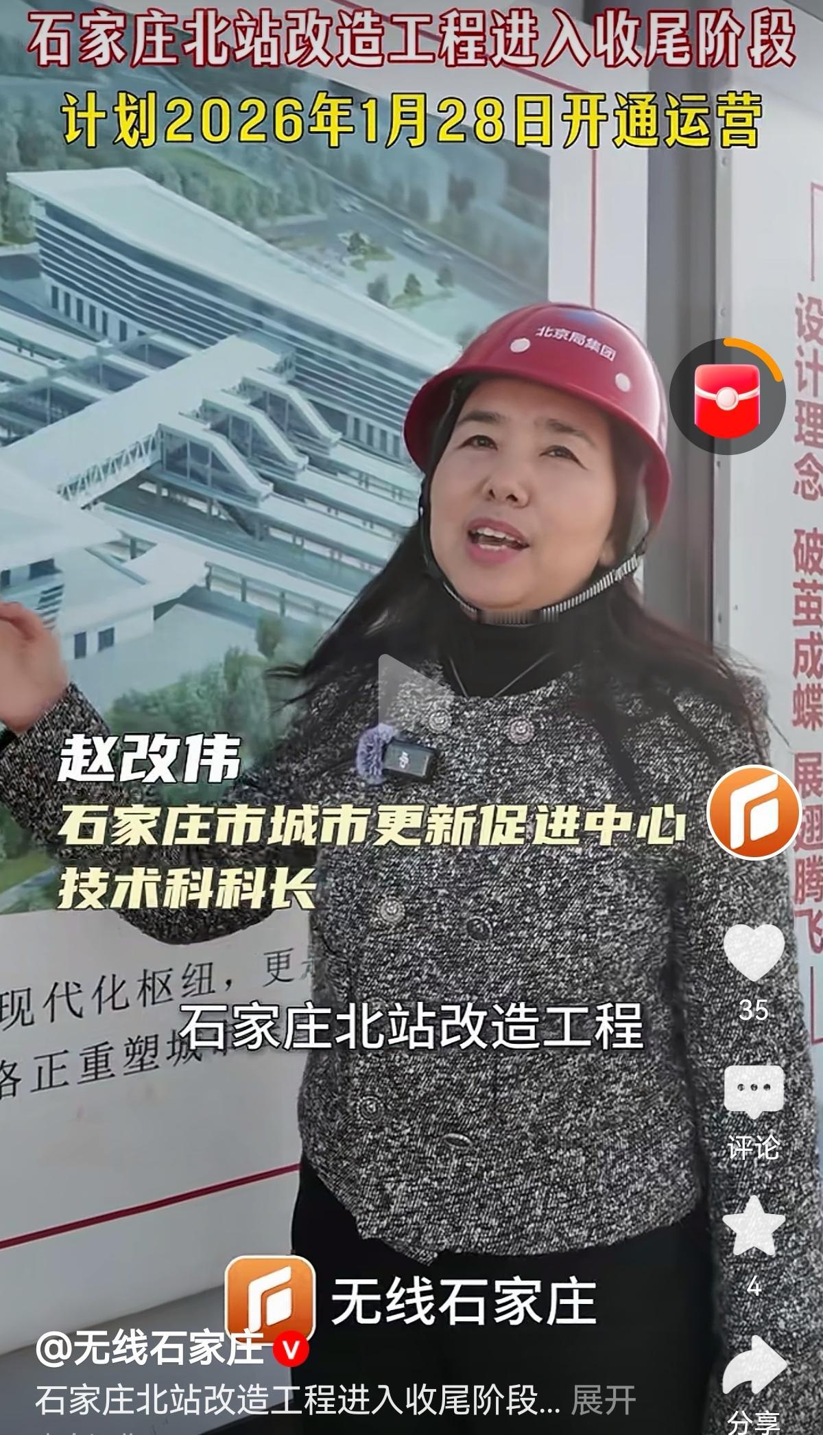 石家庄北站计划明年1月28日开通运营 石家庄市城市更新技术科科长 赵改伟: 石