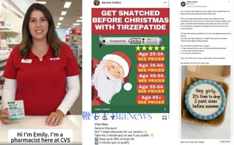 此外,AI还在广告中虚构了警察、护士和药剂师等专业形象,为未经美国食品药品监督管理局(FDA)批准的GLP-1减肥药物进行虚假背书。这种利用AI制造的“专业形象”和“神效幻象”,在用户面临婚礼、度假等重要生活时刻前夕极具诱惑力,且往往隐瞒了严重的医学风险和副作用。