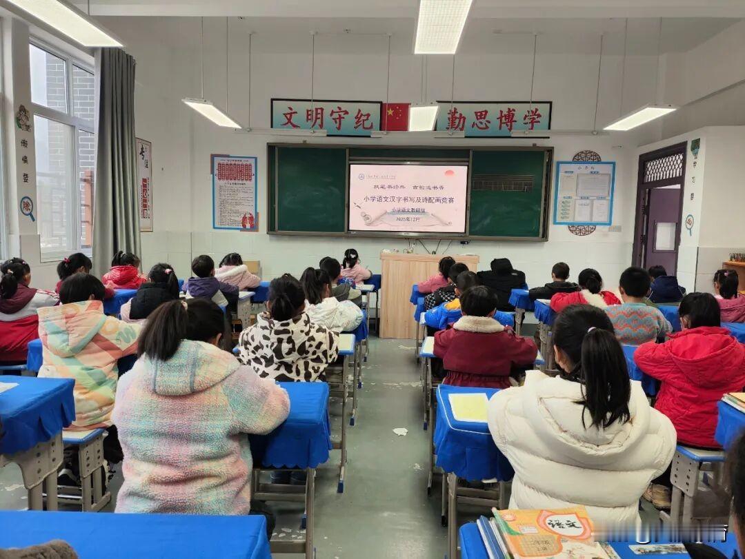 12月18日,宁强县青木川镇九年制学校举办了“执笔书经典·古韵逸书香”2025年秋季学期小学语文学科汉字书写及诗配画竞赛活动。活动分设“汉字书写大赛”与“诗配画竞赛”两个板块。 一二年级学生专注于经典古诗的铅笔书写,在一笔一画间体会汉字的结构之美与文化韵味;三至六年级学生则围绕“童真童趣”“家国情怀”“山水田园”“春日意境”等主题进行诗配画创作,将诗文意境转化为生动画面,展现出良好的艺术感悟力和创造力。 各班在统一组织下有序开展创作。学生们神情专注,或静心书写,或精心勾勒,现场气氛浓厚。活动结束后,由学校教导处与小学语文教研组联合组成的评审组,依据公开、公平、公正的原则,对作品进行了细致评审,评选出各等次奖项。 12月19日,学校利用早操集会时间举行表彰大会,为获奖学生颁发了奖状和奖品。优秀作品在校园内设立的“经典书香展区”集中展出,吸引了众多师生驻足欣赏、交流学习,成为校园内一道亮丽的文化风景线。 活动有效激发了学生对中华经典的热爱,提升了学生的书写能力、审美情趣和综合素养,学校表示,未来将继续开展形式多样的学科文化活动,助力学生全面发展、健康成长。(图文/黄亚莉)