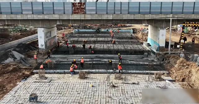 目前,东延工程已进入最后收尾阶段,关键工程节点悉数完成:穿越“两高”区域的主路基层已全线铺筑完毕;涉铁段最复杂的顶管施工已完成,正在进行主体结构施工;道路绿化、照明等配套设施同步推进。