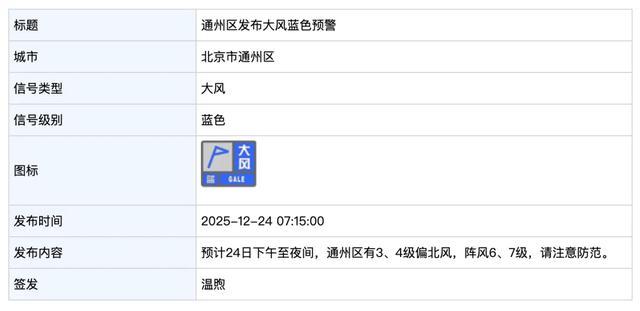 通州区气象台发布了