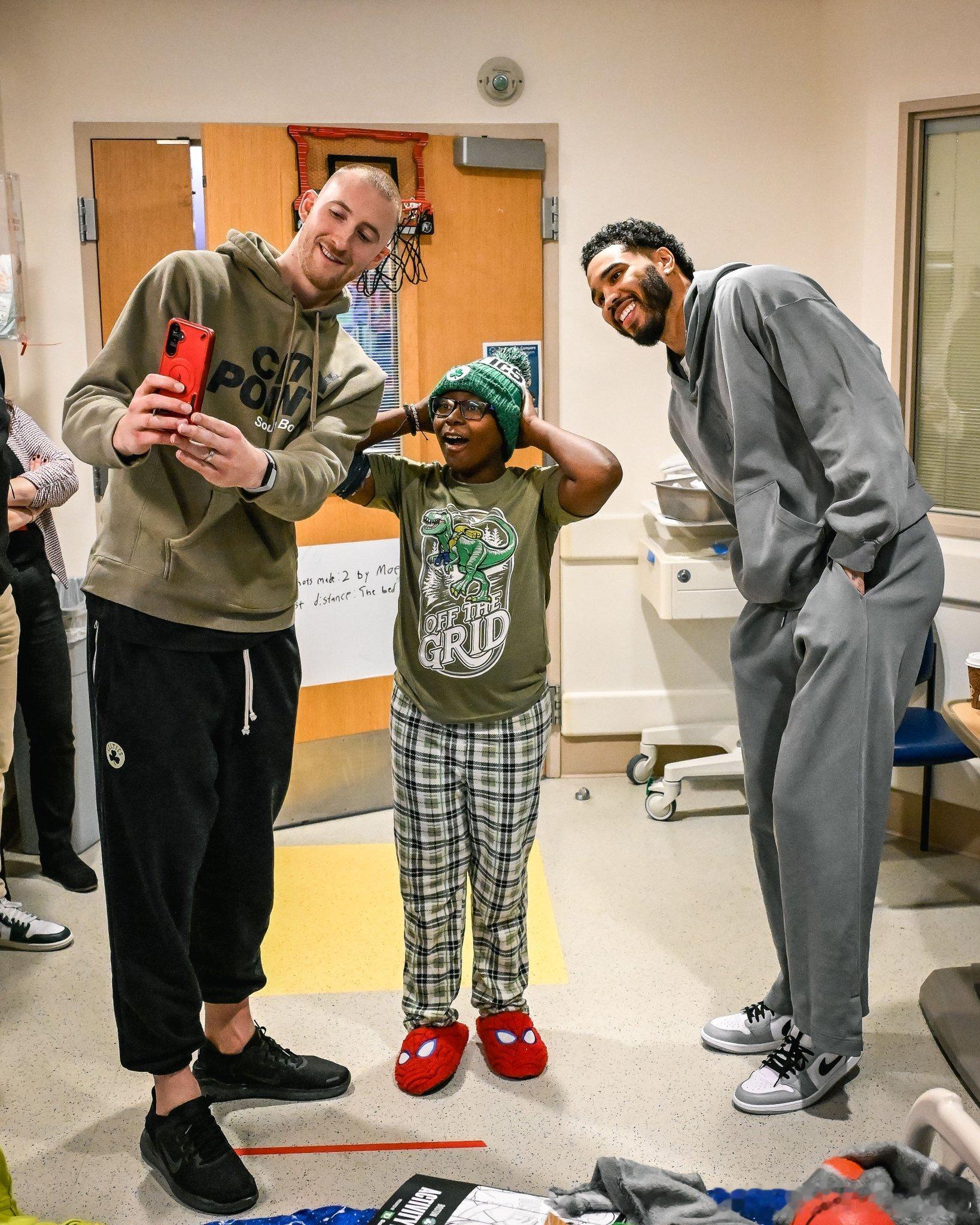 杰森·塔图姆!代表波士顿凯尔特人,和豪瑟、普里查德、A西蒙斯、米诺特、奎塔等Celtics球员,一起去波士顿儿童医院看望了那边的孩子和工作人员暖心行为,Deuce爹一直积极参与,正好Celtics最近休息几天,下一场要周六继续对阵步行者!