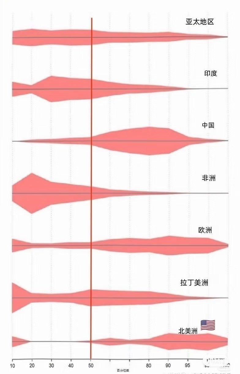 记录者 因为中国的0-10这个横坐标区间的人群,拥有的财富也是在全世界拔尖的了!虽然他们“润”霉里贱依然会有巨大落差感。另外,中国才是真正的“纺锤形”,而且对于0-10这个区间人群还有各种“锁血机制”防止返贫。而霉里贱是直接放弃了这个人群了!为什么海外华人感受不到斩杀线