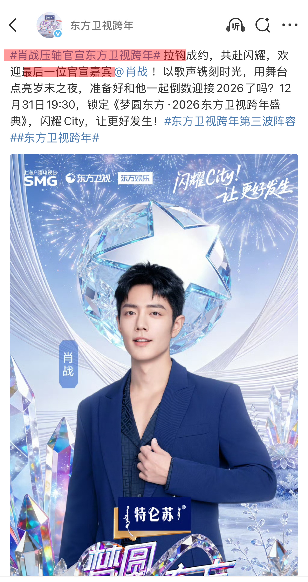 东方卫视就这样给了大压轴,还单独建了个词条,能请到肖战出山确实很荣幸了