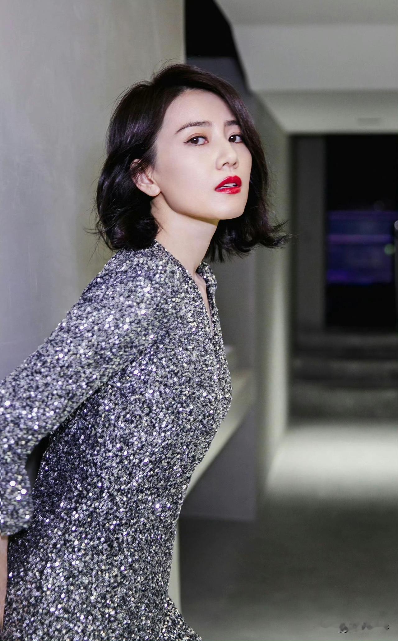 高圆圆写真,短发时尚干练,妆容精致美艳,皓齿红唇。美的如此赏心悦目!高圆圆