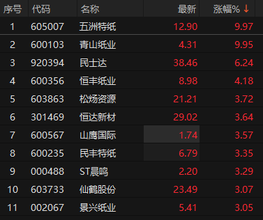 造纸板块震荡拉升 五洲特纸、青山纸业午后涨停
