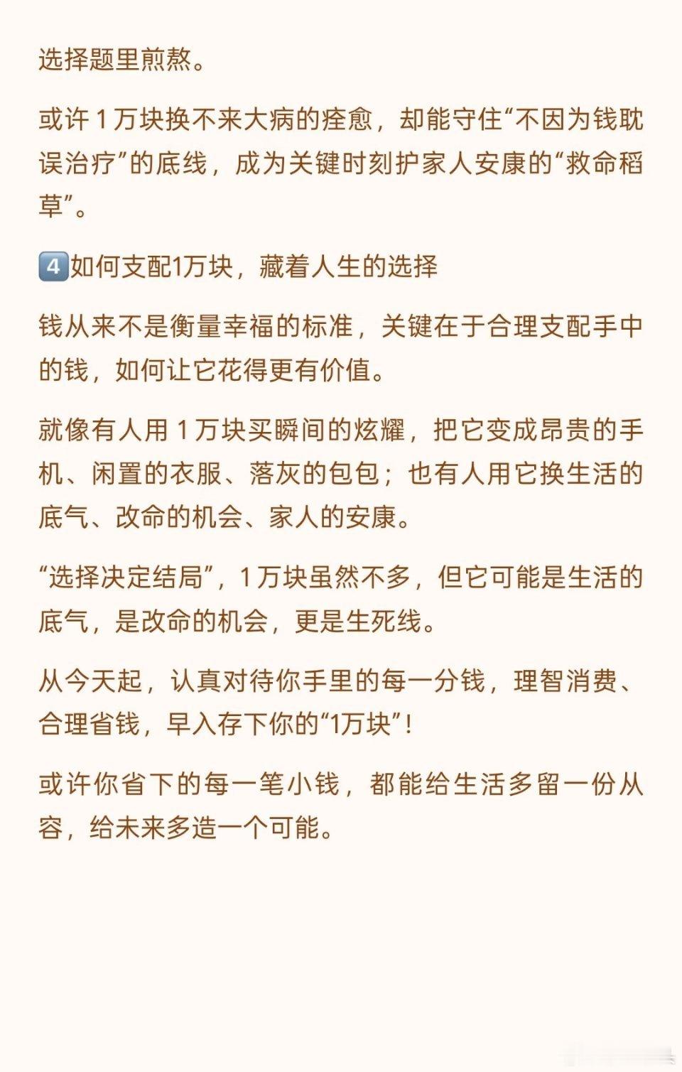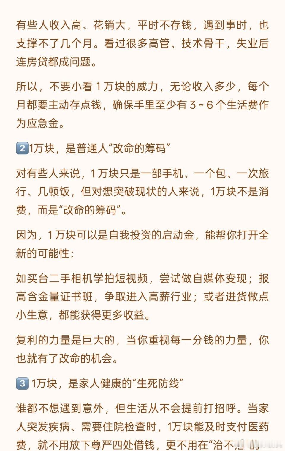 很多人都低估了1万元的威力要是花1万块钱,那实在是太容易了。买一部旗舰手机,可能1万块钱就花出去了。可要是攒1万块钱,月薪5000除去日常开支,要是一个月攒3000也要攒三个多月。要想养成一个良好的存钱习惯,就要从攒第1个1万块钱开始,看见余额一步一步增长,真的是会有一种满足感的。