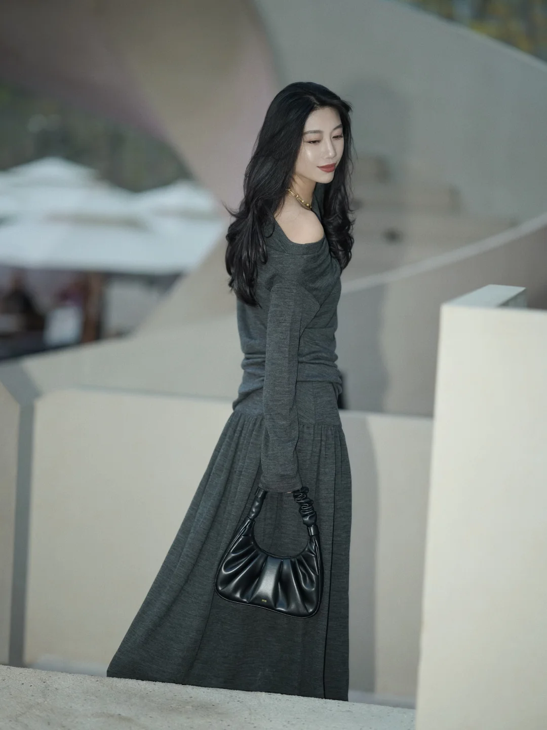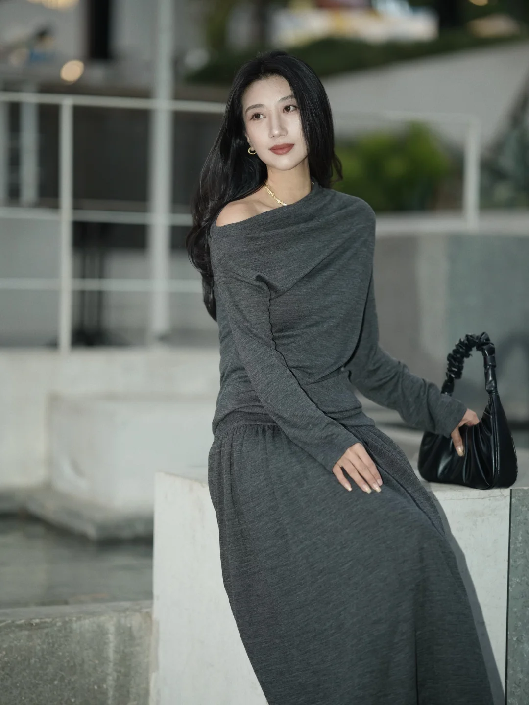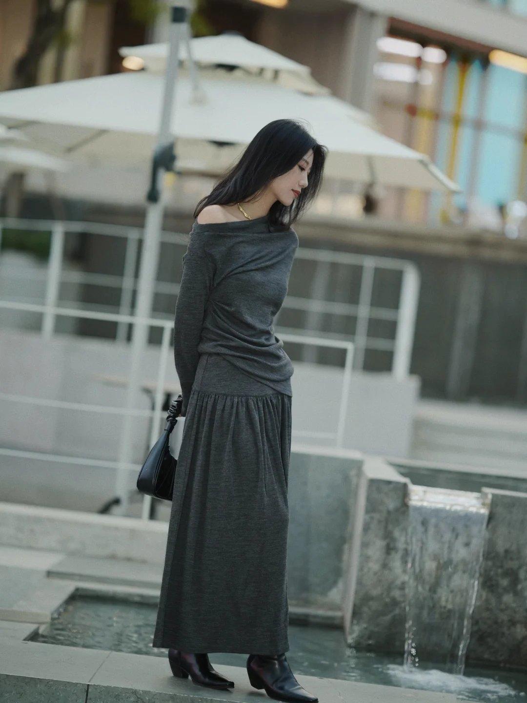 冬天赴约,在厚厚的羽绒服中我选了灰色设计感的裙子,它像一片柔软的暮色,安静裹住我。 搭平底靴子,镜子里的人简净温和——正是我想带给老友的样子。 脱去羽绒服的包裹,裙摆拂过靴筒。忽然想起从前我们总在冬夜挤作一团,分享滚烫的心事。此刻傍晚的余光是朋友间一起聊天留影的放松时刻。 灰是留给自己的余地。在喧闹聚会中,它让我既在场,又拥有随时静下来的可能。 推开门,暖意和笑声迎面扑来。我的灰裙子,正适合融进这片久违的热闹里。