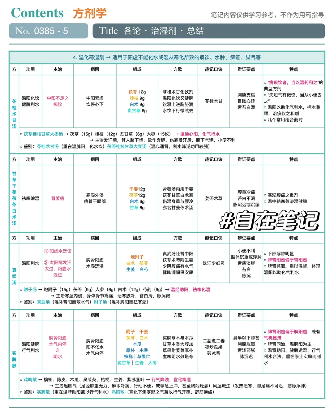 ★ 温化寒湿剂➡️适用于阳虚不能化水或湿从寒化所致的痰饮、水肿、痹证、脚气等➡️苓桂术甘汤|甘草干姜茯苓白术汤|真武汤|实脾散