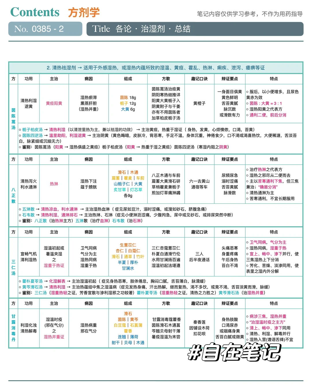 ★ 清热祛湿剂➡️适用于外感湿热,或湿热内蕴所致的湿温、黄疸、霍乱、热淋、痢疾、泄泻、痿痹等证➡️茵陈蒿汤|八正散|三仁汤|甘露消毒丹|二妙散|连朴饮|当归拈痛汤
