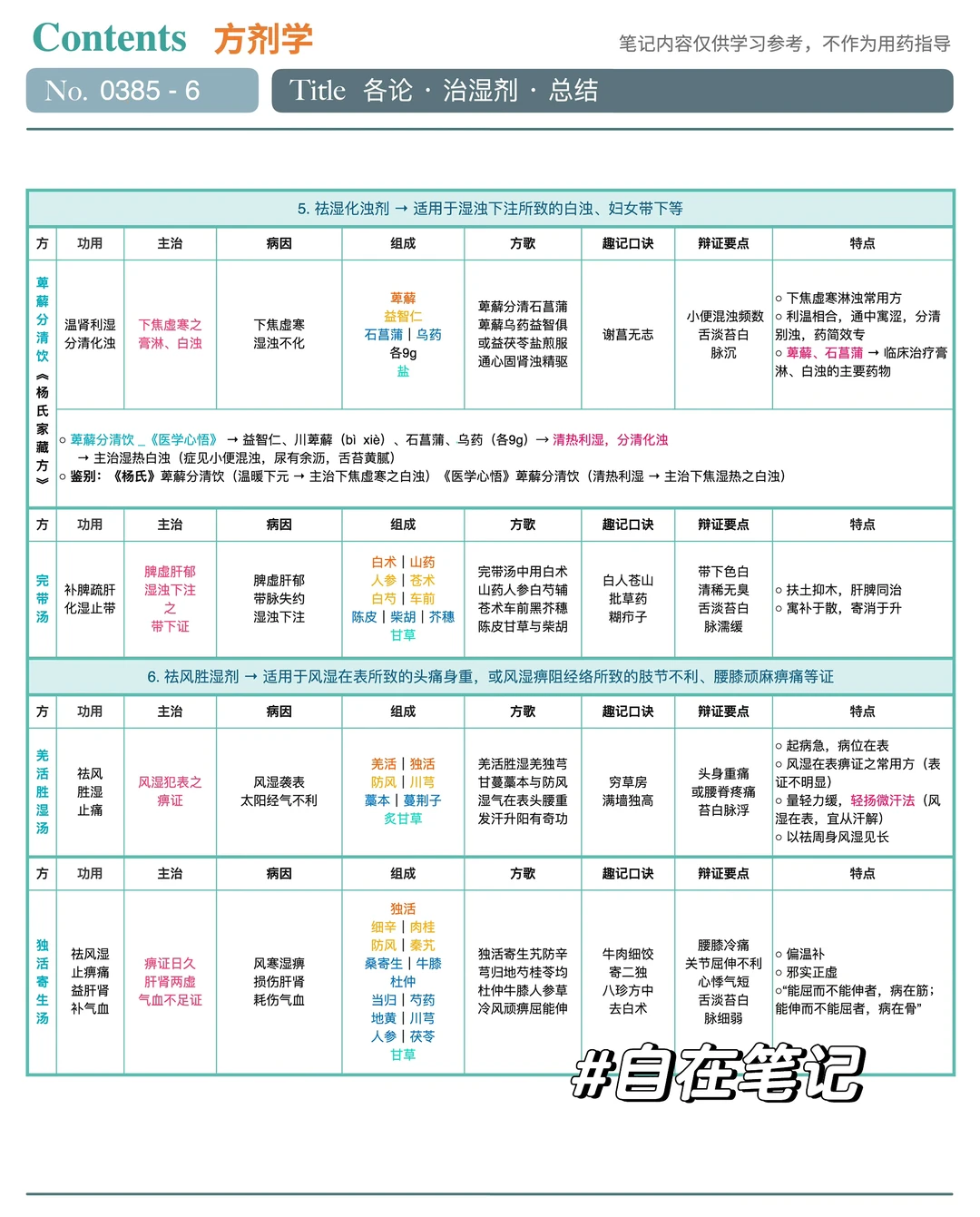 ★ 祛风胜湿剂➡️适用于风湿在表所致的头痛身重,或风湿痹阻经络所致的肢节不利、腰膝顽麻痹痛等证➡️羌活胜湿汤|独活寄生汤