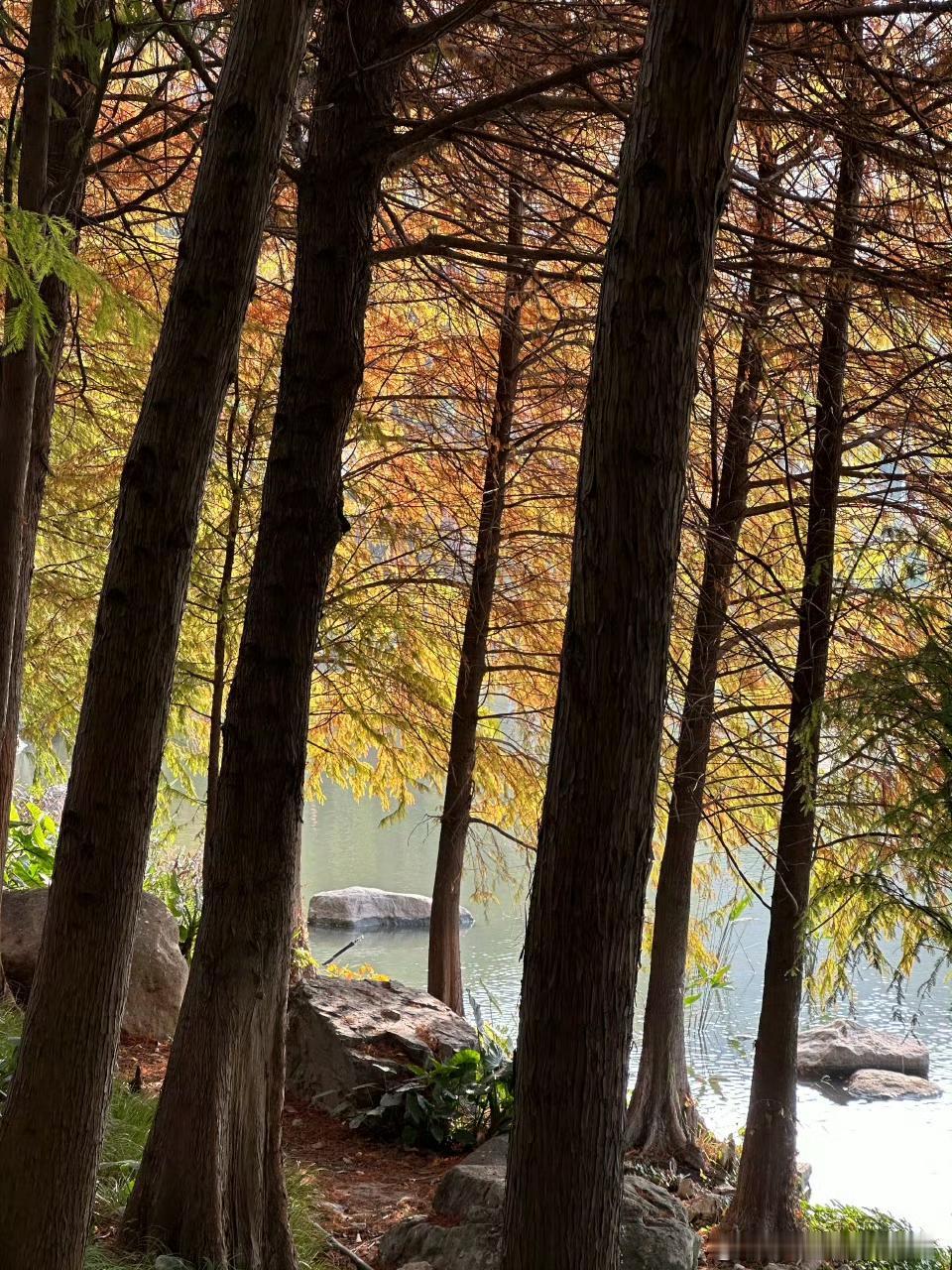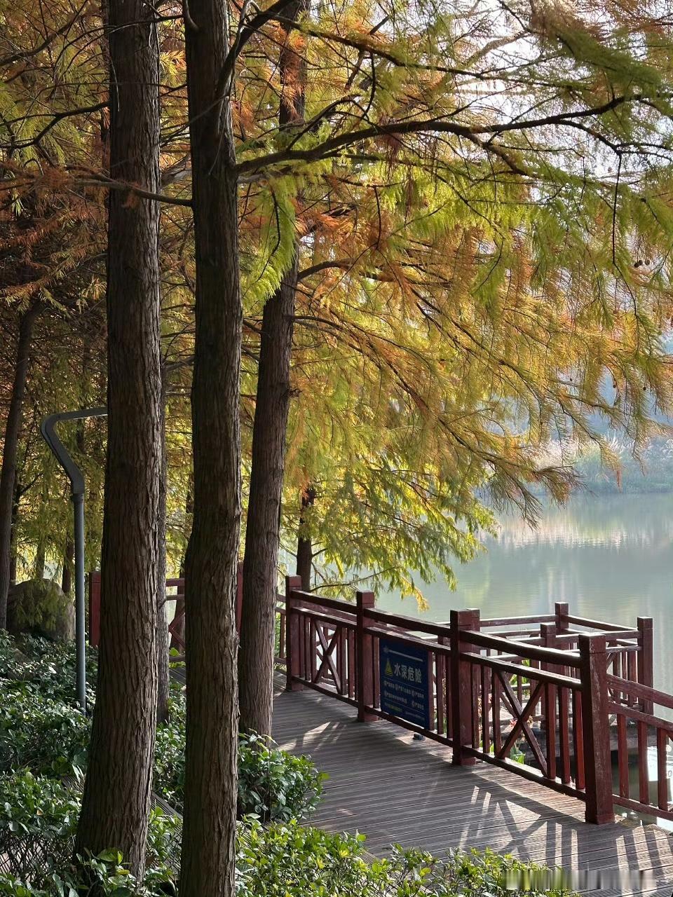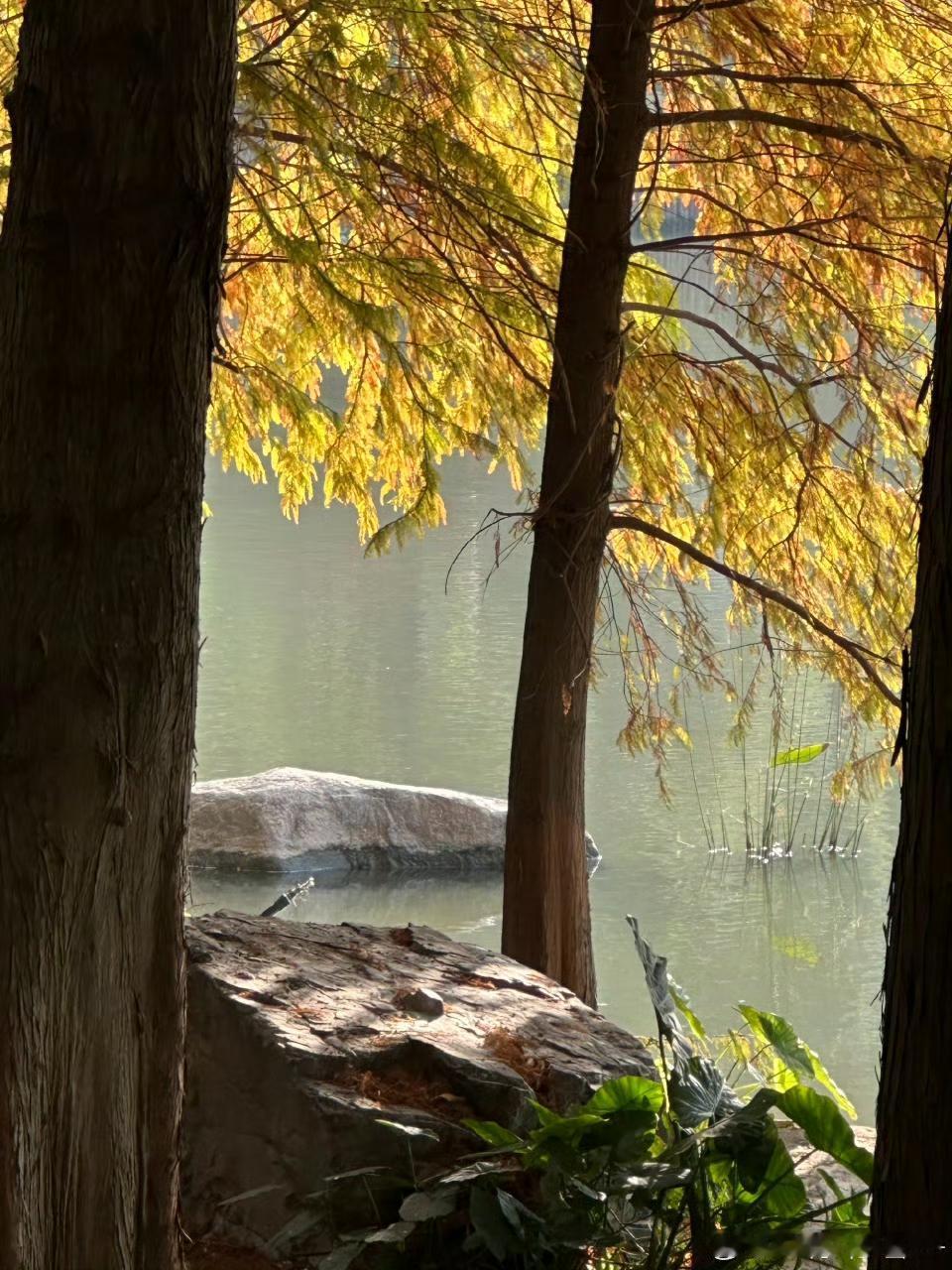 【琴亭湖公园的冬日松弛感】 岸边树叶渐染橙黄,在湖面漾起细碎的暖光。来此漫步,