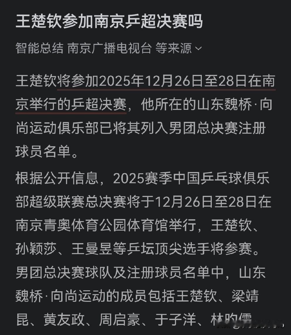 与王楚钦相比,樊振东到底差在哪儿?从二十三号至明年一月三日,德国国内(乒乓)暂无赛事,而乒超总决赛将在二十六日重燃战火。令人不解的是,樊振东放弃了只有三天的乒超总决赛而去赴波尔的圣诞之约。翘楚以待、想再次目睹全运会男单冠军风采的球迷们要大失所望了。 众所周知,在刚刚结束的WTT年终总决赛上,王楚钦为国争光轻伤不下火线,终因急性背疼而被迫退赛治伤。据悉,这位中国男乒领军人物确认参加乒超总决赛。成绩因身体原因可能不理想,但是这种职业道德是值得称赞的。