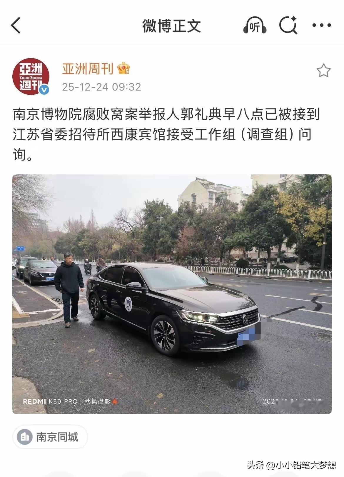 南京博物院的副院长徐湖平是昨天中午12点多被带走的,而实名举报他的南博的员工郭礼典是今天早上8点钟就已经到了江苏省委招待所西康宾馆。 如果没有猜错的话,昨天接走徐湖平的就是江苏省招待所里面的调查组的工作人员,如果没有猜错的话,这些工作组人员就是国家文物局里面的人了。 而根据南京博物院的副院长徐湖平邻居透露,当天晚上10点多就有一大堆公安包围了俆湖平家,他的别墅灯火通明,以前从来不这样,应该是工作组在他家询问和搜寻了十多个小时的证据了。 徐湖平的老伴和小保姆也是一起被接走的,那就是说要照顾他的起居了?这事情估计不是审一天两天就完事了! 看一看之前,几家媒体帮忙梳理仇英江南春画疑似流失事件人物关系图,就知道要查这个事情不简单,而且也不知道这个徐院长他会不会开口,这张关系图证明徐副院长上通下达,郭礼典以及40位高级知识分子的的实名举报都能能疏通摆平,这不是一个人的能力。 不过希望他能够认识到,今时已经不同往日了,上面已经重视了,就算他不开口,相信上面也会查的清清楚楚的,在特殊时期,非文物研究专业的可以在院长岗位履职多年,大型国家典藏文物保护和管理同时涉及国有文物商店任职,这不是一句现在一句身体不好不理世事就说的清的。