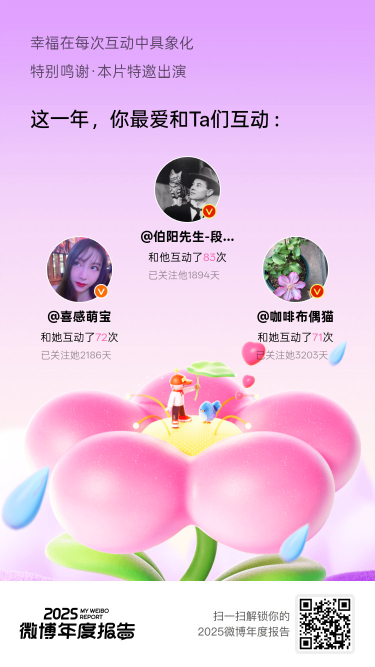 捷报喜报!2025我的V影响力力持续在线:金V成就闪耀365天 感谢家人们一路力挺!来看看你的年度总结吧~点击开启>>2025微博年度报告 微博年度报告微博之夜