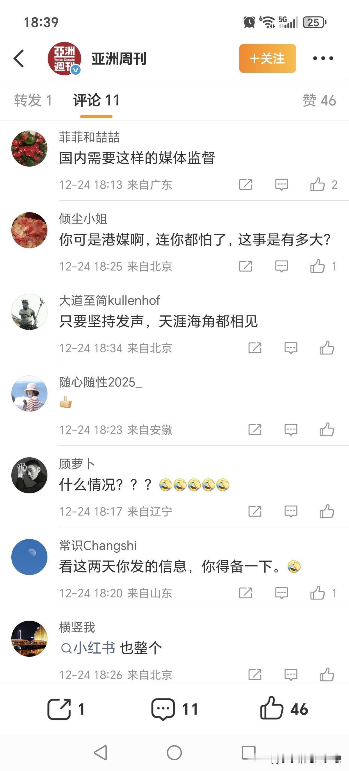 完了完了,亚洲周刊,可能也扛不住了,已经开始准备备用账号了,我是没想到啊,他可是港媒呀,都到这个地步了吗? 我还蹲着想吃大瓜呢。