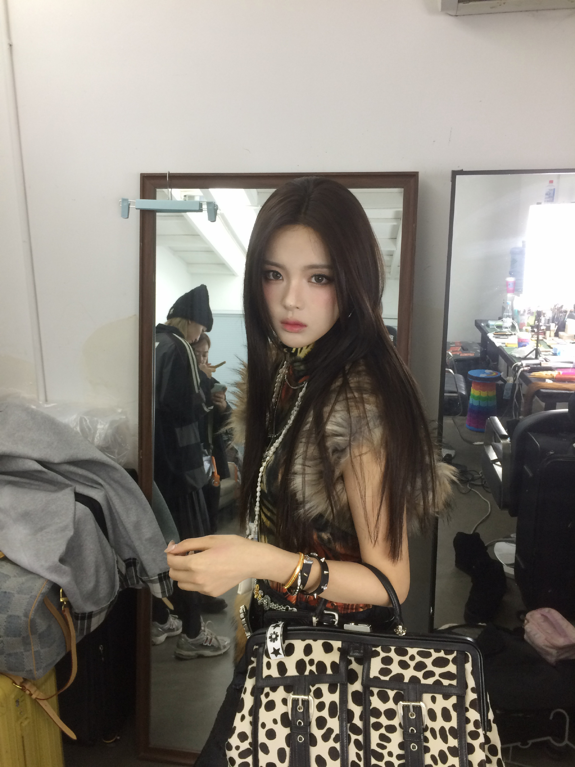 杨超越千禧辣妹妆 这组千禧辣妹妆造型鲨疯了!!皮草配豹纹又酷又媚,酒红色手套一戴复古氛围感直接拉满超越你就是一只狂野小美猫