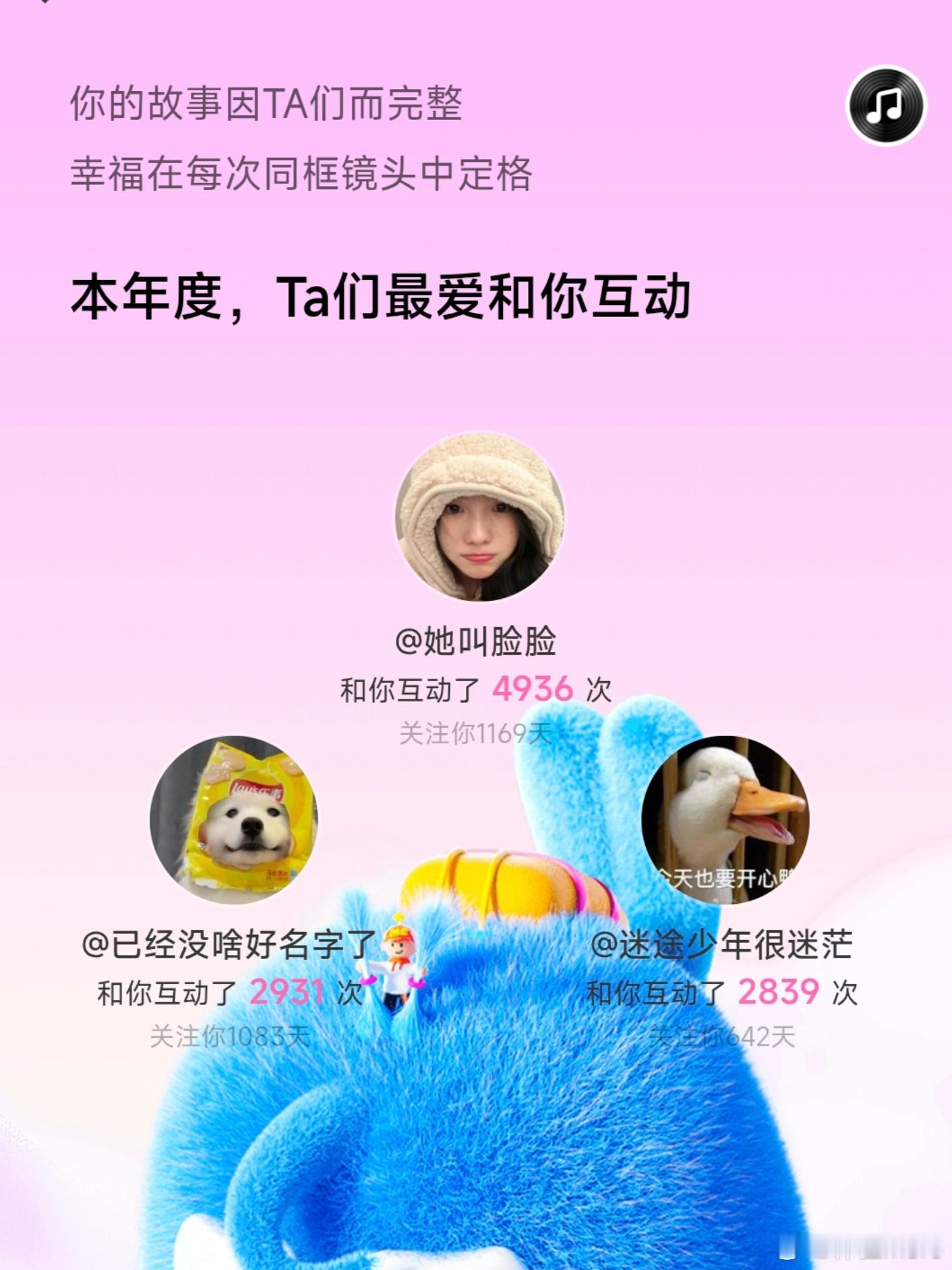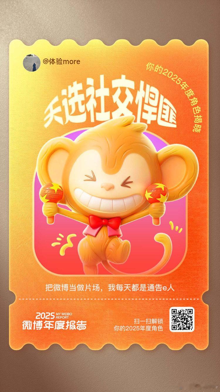 2025微博年度报告出来了,我今年发布了2726条微博,收获33.9万个转赞评,被围观2.8亿次,感谢大家。微博给我选的年度角色是天选社交悍匪,一点都不准确。和我互动最多。明天疯狂星期四,50元小红包奉上,非常感谢。戳链接查看你的微博年度报告:网页链接