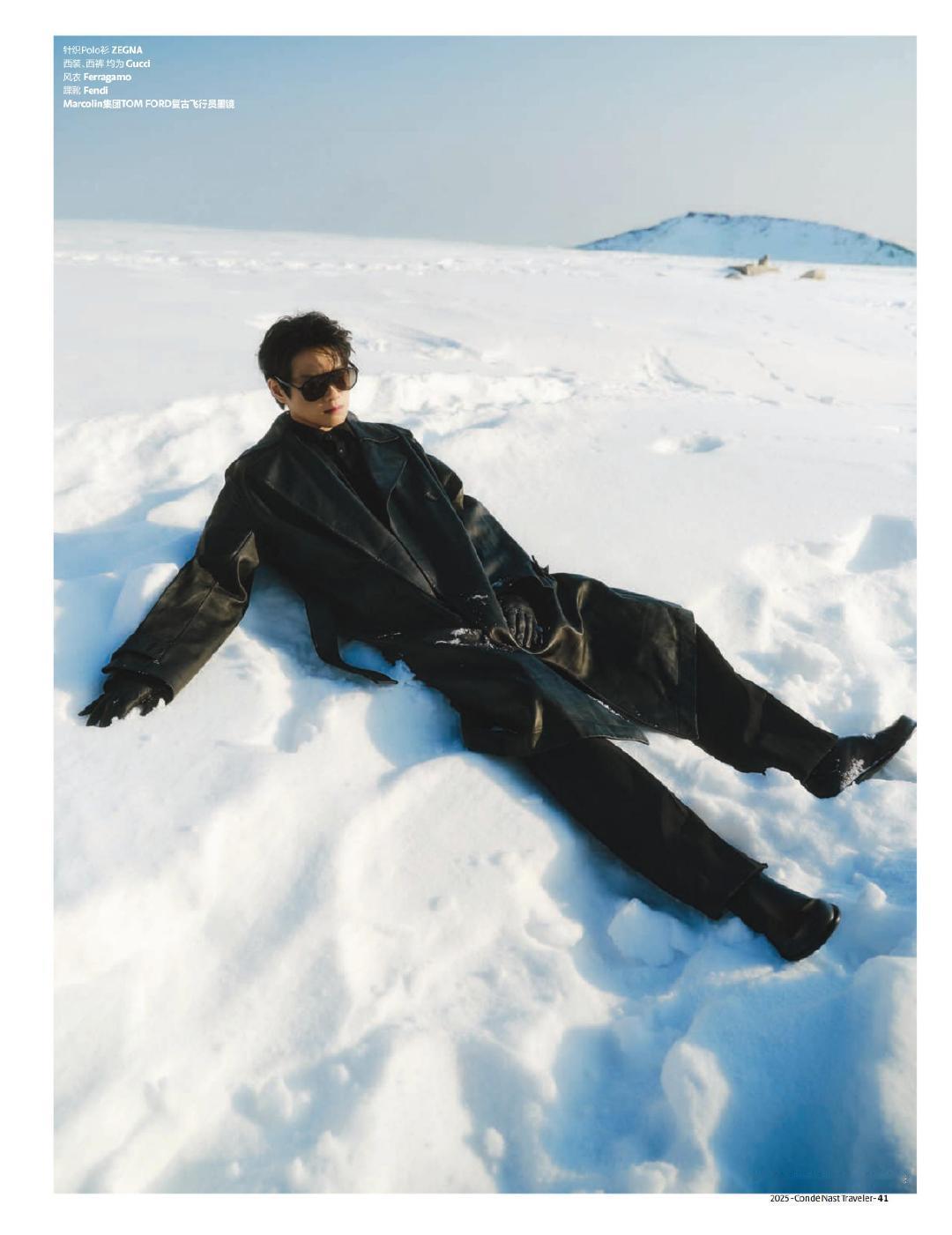 魏大勋 x 悦游Condé Nast Traveler Nov & Dec 2025 收官封面内页,与可可托海的白色假日,冰天雪地里的冬日王子❄️