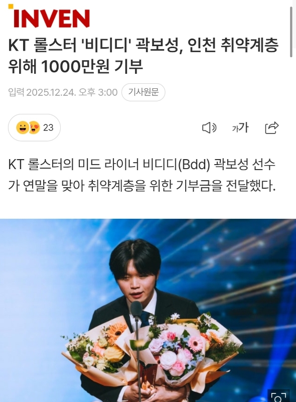 此次捐赠决定,正是基于他希望与大家分享2025成绩带来的喜悦,同时向长期支持自己的粉丝以及辛勤付出的工作人员表达感谢。通过仁川社会福利共同募捐会转交的这笔善款,将用于帮助当地生活困难的居民。