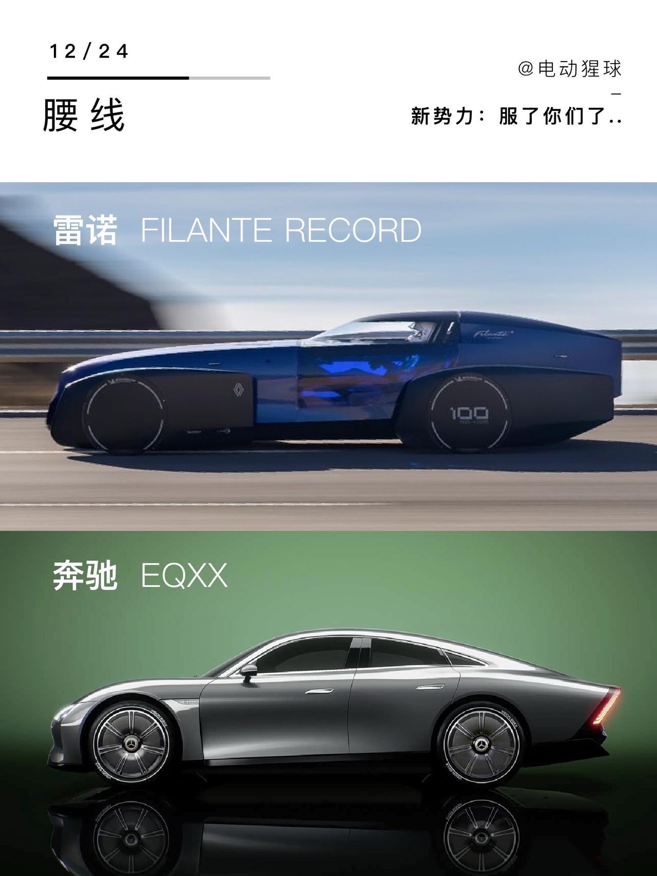新势力:服了你们了..雷诺纯电概念车达成1000公里续航,时速102公里,电池包仅为78度,不过这造型也太犯规了😂之前奔驰的EQXX也完成了1000公里挑战,造型要常规的多,但电池包为100度,并且借助了太阳能充电(占比约百分之2)你觉得未来传统电车还有机会吗?新能源汽车