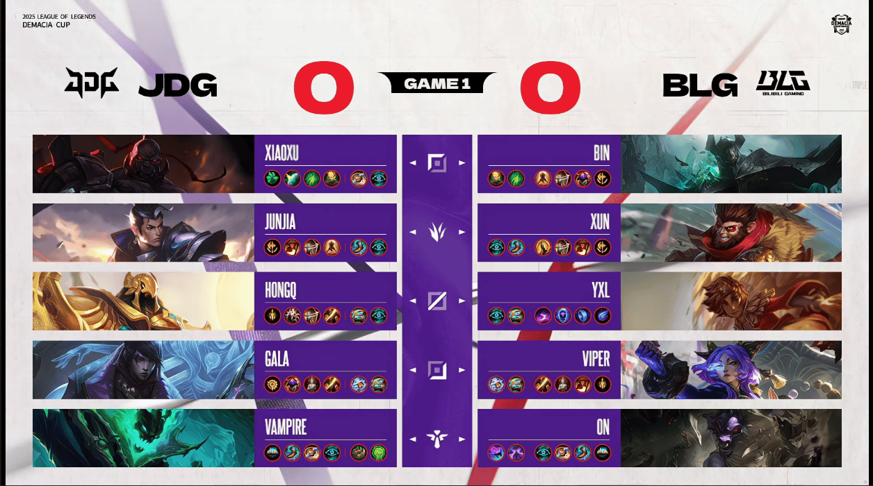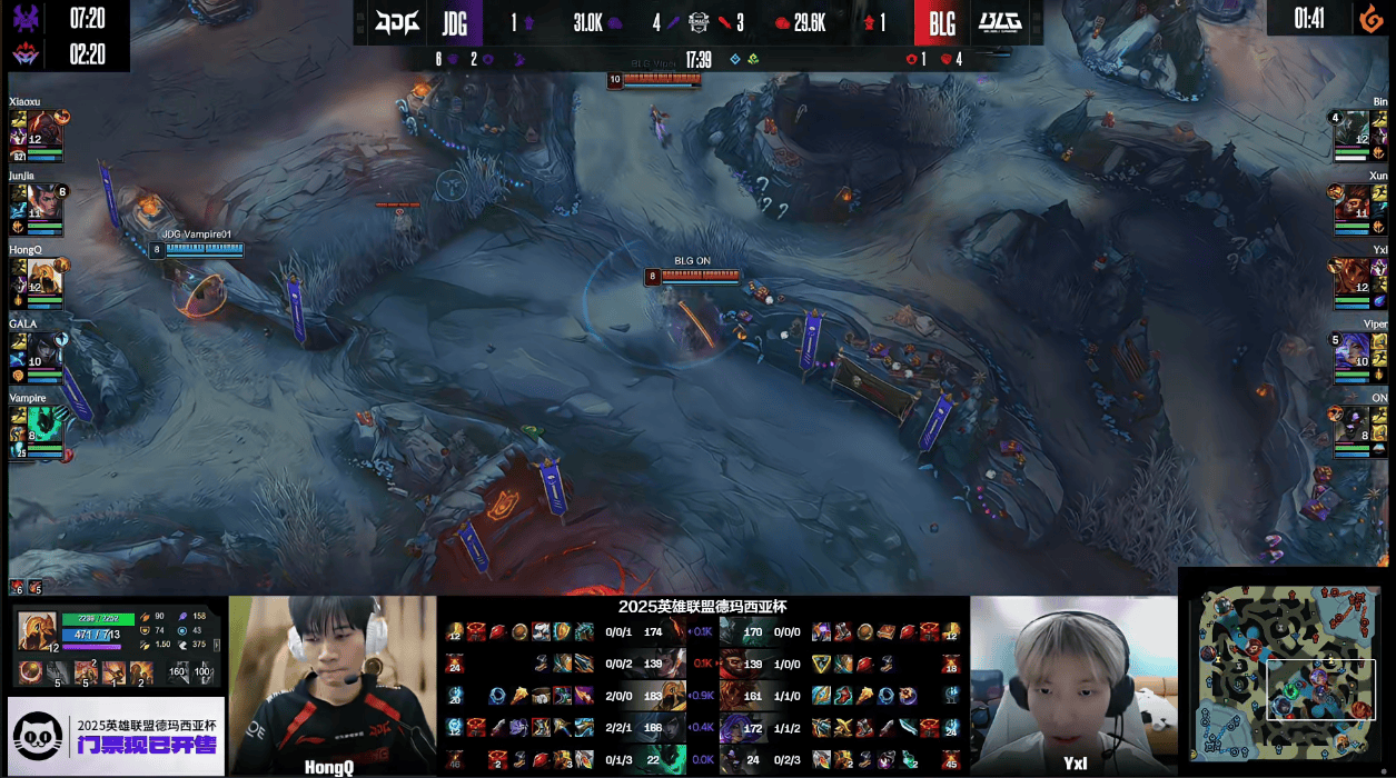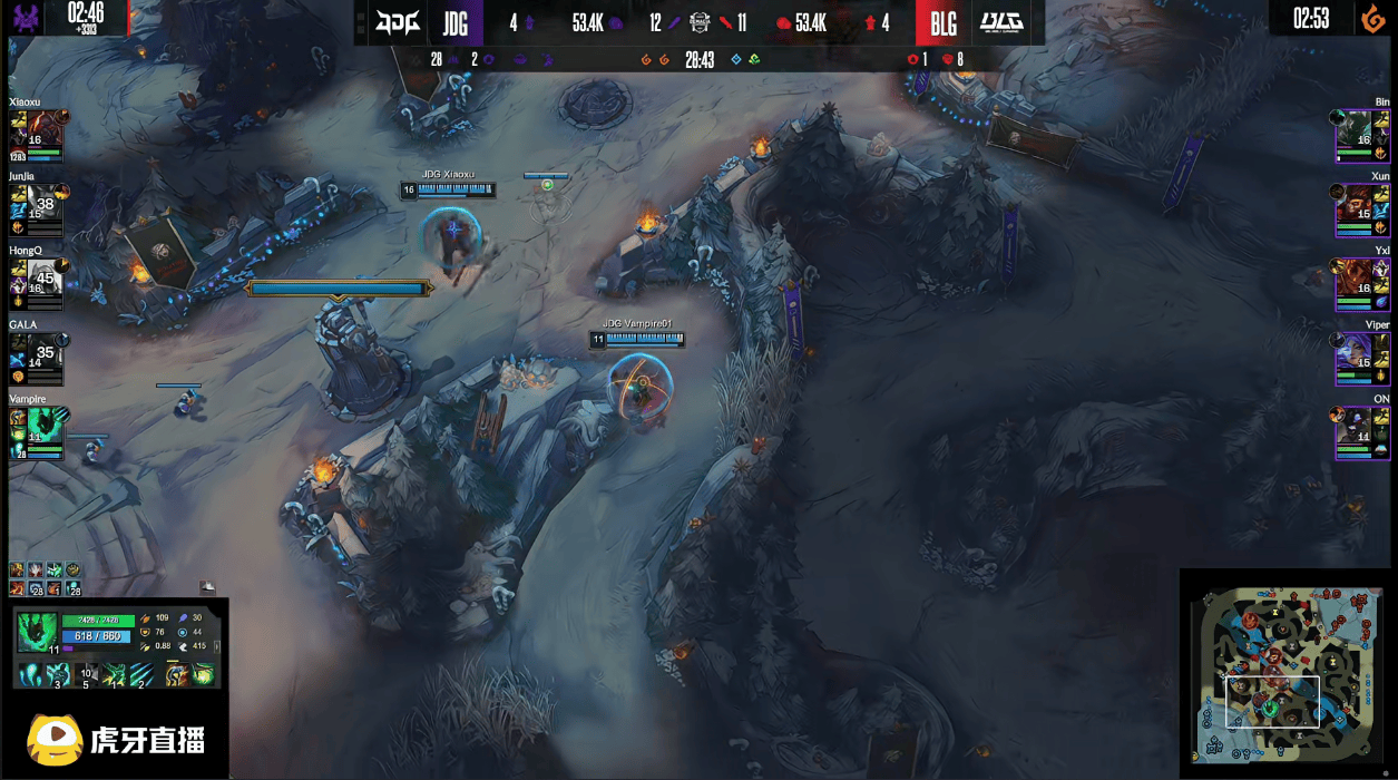 虎扑12月24日讯GAME1:JDG蓝色方;BLG红色方