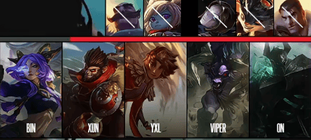 BLG选用:Bin铁男;Xun猴子;Yxl岩雀;Viper芸阿娜;ON牛头