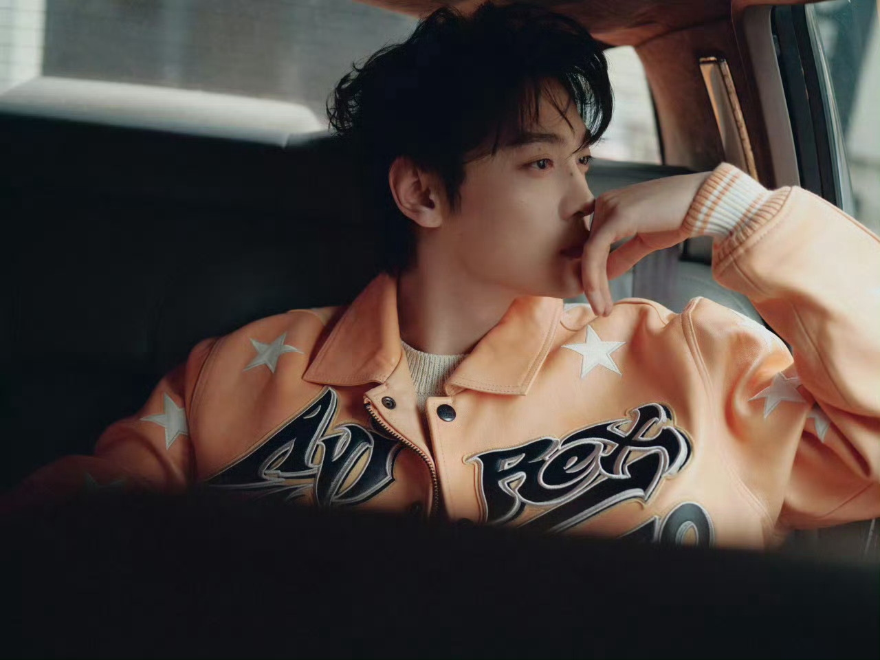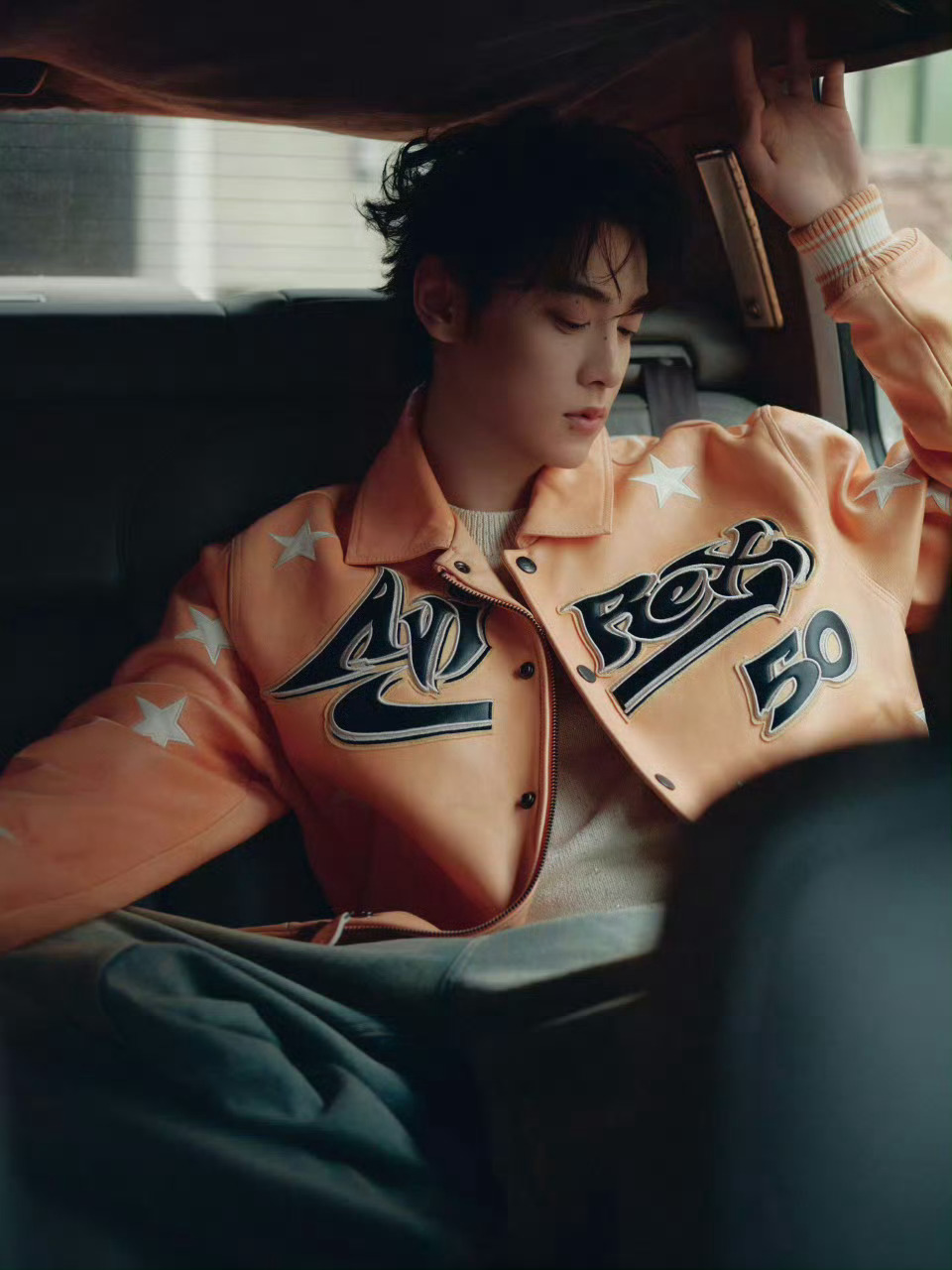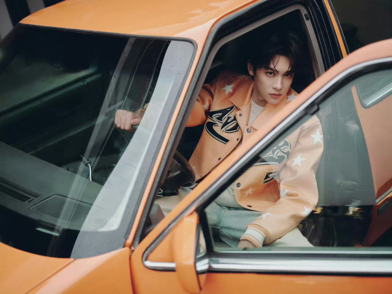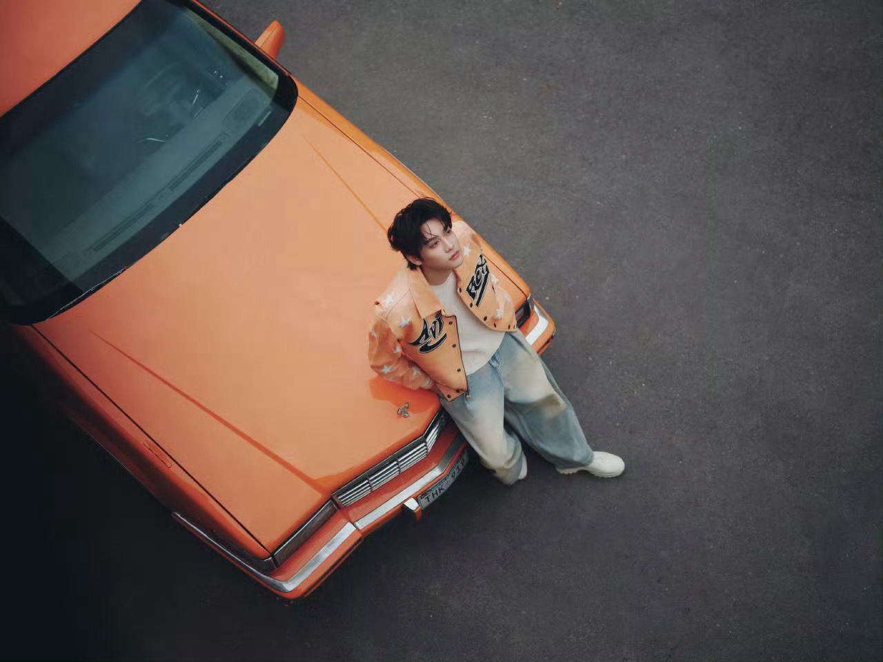 田栩宁|新造型营业大片,身穿Avirex橙色机车夹克,置于同色系复古跑车,魅力男演员的百变风格🧡