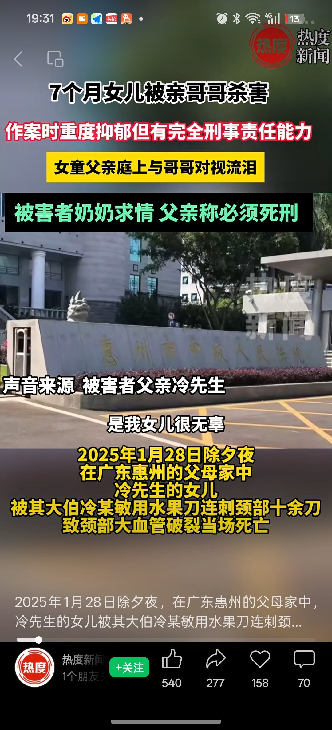 杀害侄女男子2次精神鉴定均处发病期感觉最近已经看到多起老家或者家庭附近的人因嫉妒而杀人的状况,比如四川同小区的精神病女杀了海归女。发小杀了好朋友的妻儿。对他人(尤其是看似更幸福或者拥有“自己所缺失之物”的人,比如有孩子的弟弟)的攻击,是一种扭曲的心理防御机制。有了孩子、致富以后要谨慎返回老家。更要谨慎和旧生活的人、周围长期接触者产生过多露底联系。