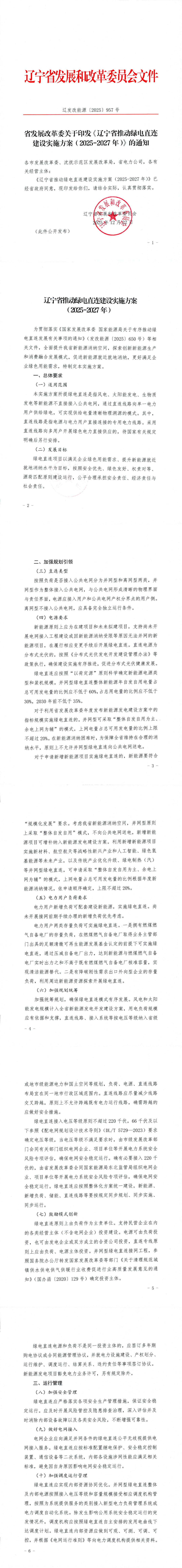 储能与电力市场获悉,12月23日,辽宁省发展改革委关于印发《辽宁省推动绿电直连建设实施方案(2025-2027年)》(以下简称《实施方案》)的通知。